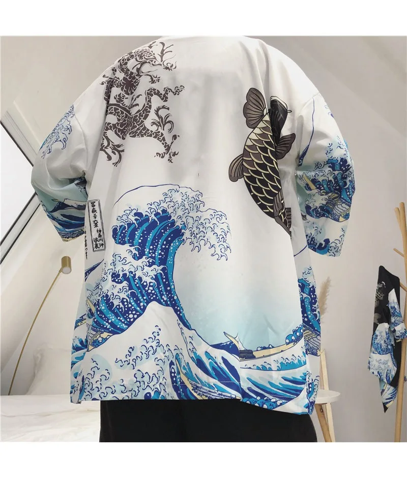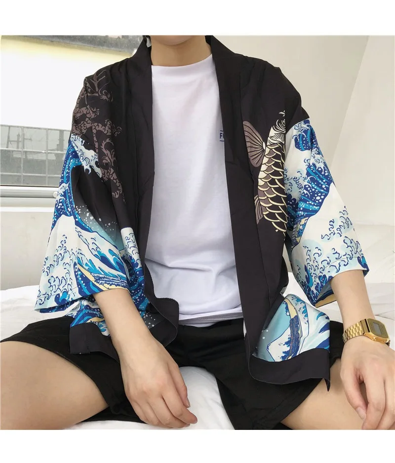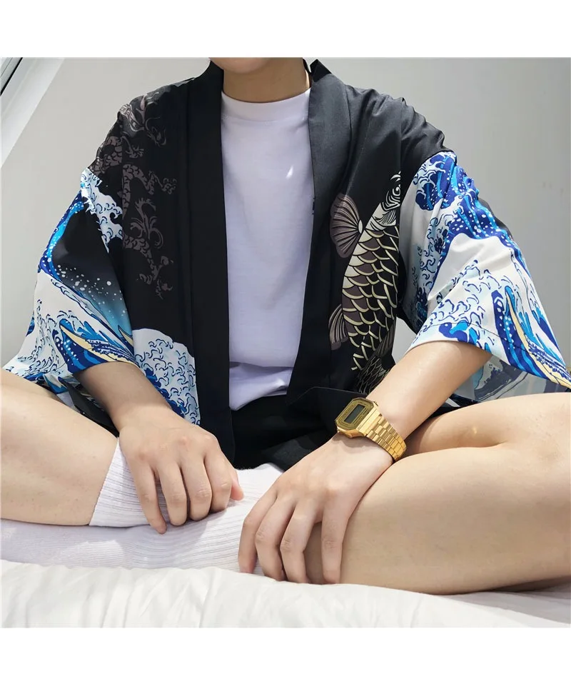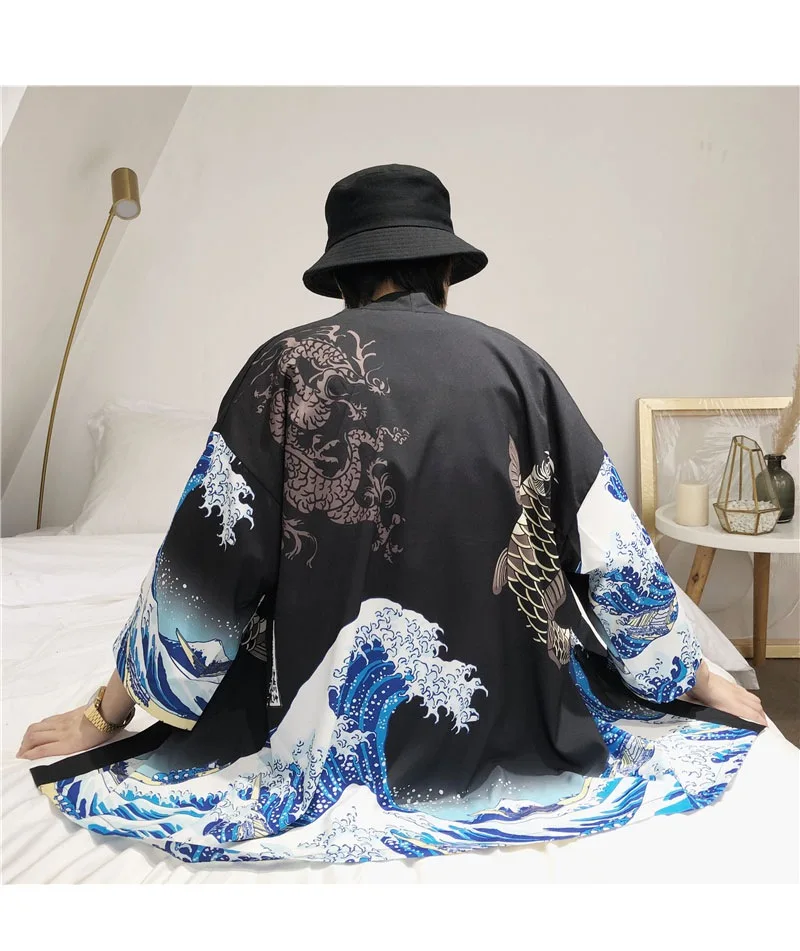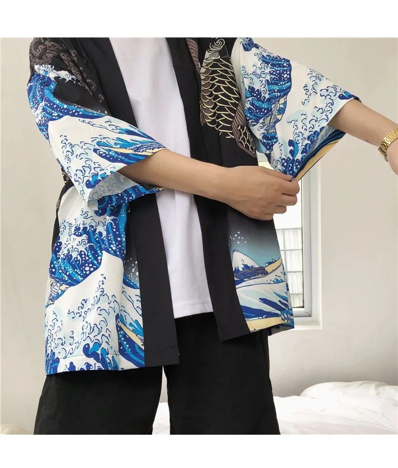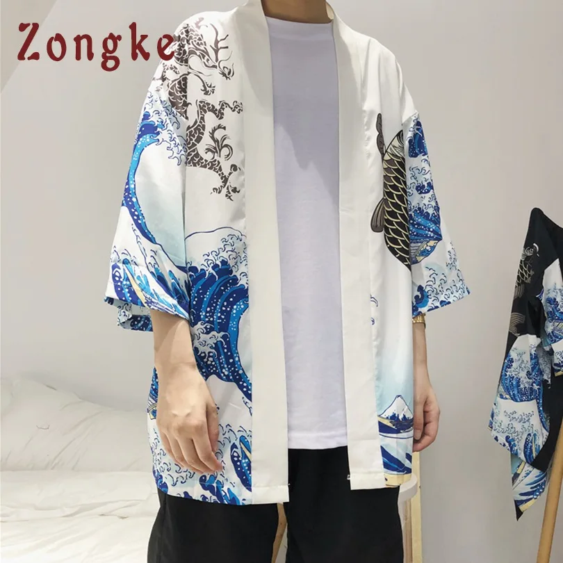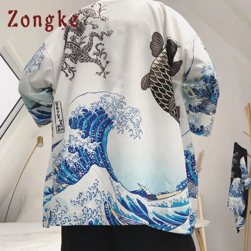 Zongke японский кимоно кардиган для мужчин с волнистым и Карповым принтом длинный Кимоно Кардиган для мужчин тонкий мужской s Кимоно Кардиган Куртка пальто 2022Примечание: Мы продаем китайские размеры. Пожалуйста, выберите размер в соответствии с нашей формой.