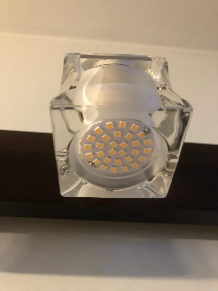 Лампы хорошего качества. На мой взгляд, теплый белый-это довольно естественный цвет, но это не мешает глазам. Лампы тускнеют очень красиво, почти до конца. Яркость ламп 8 Вт (фактическая Измеренная мощность 6 Вт), сопоставимая с галогенной лампой 50 Вт.