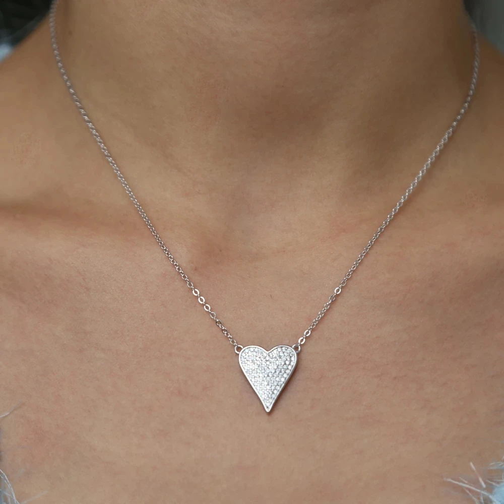 100% 925 пробы серебро микро паве cz Сердце ожерелье сверкающий кубический цирконий валентинки подарки для любимой элегантные романтические ювелирные изделия