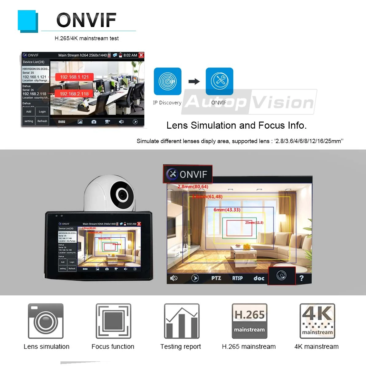 IP1800 plus: 4-дюймовый сенсорный экран/8MP TVI / 8MP CVI / 8MP AHD / 4K H.265 IP / CVBScamera тест