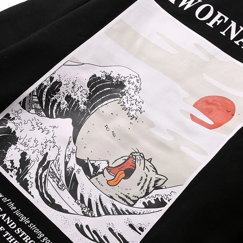 Толстовка мужская флисовая, с вышивкой в виде кота, черная, повседневная, осенне-зимняя, 2021