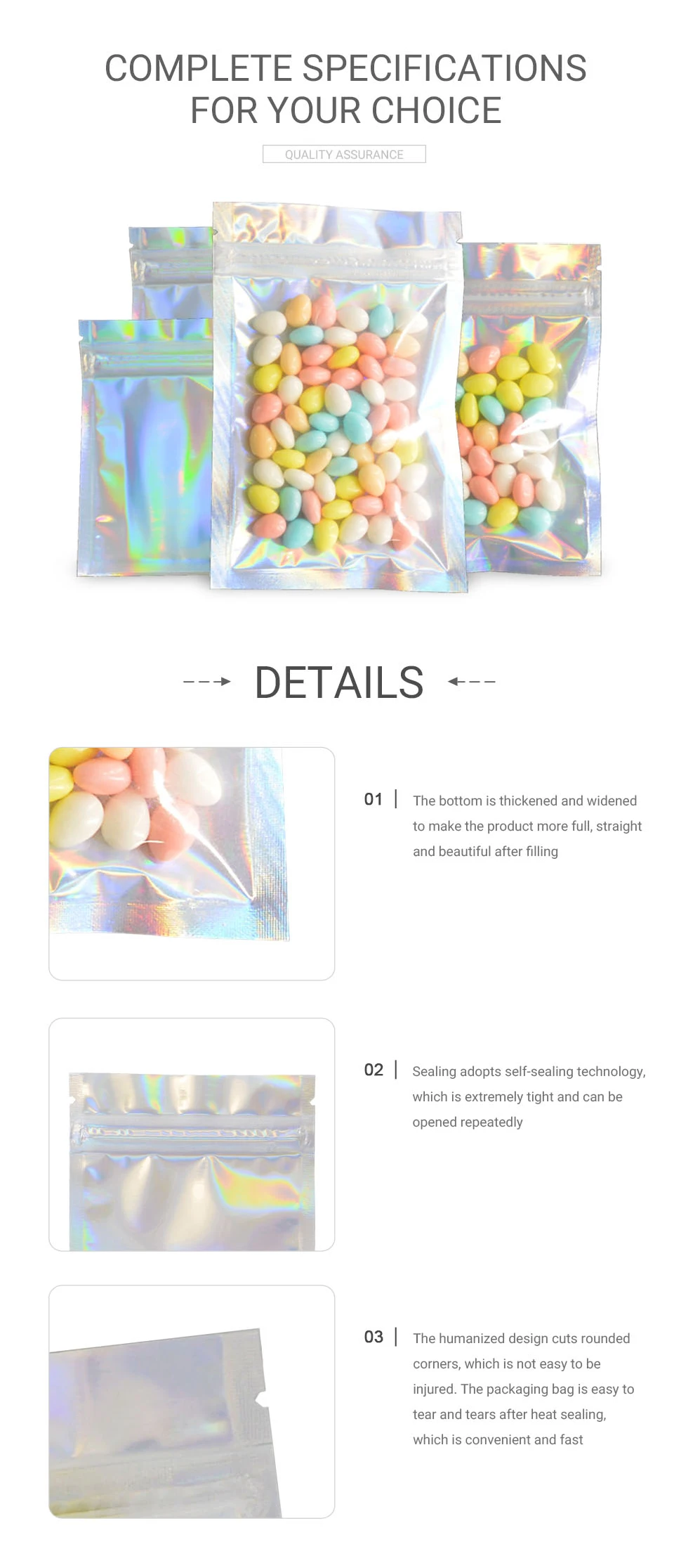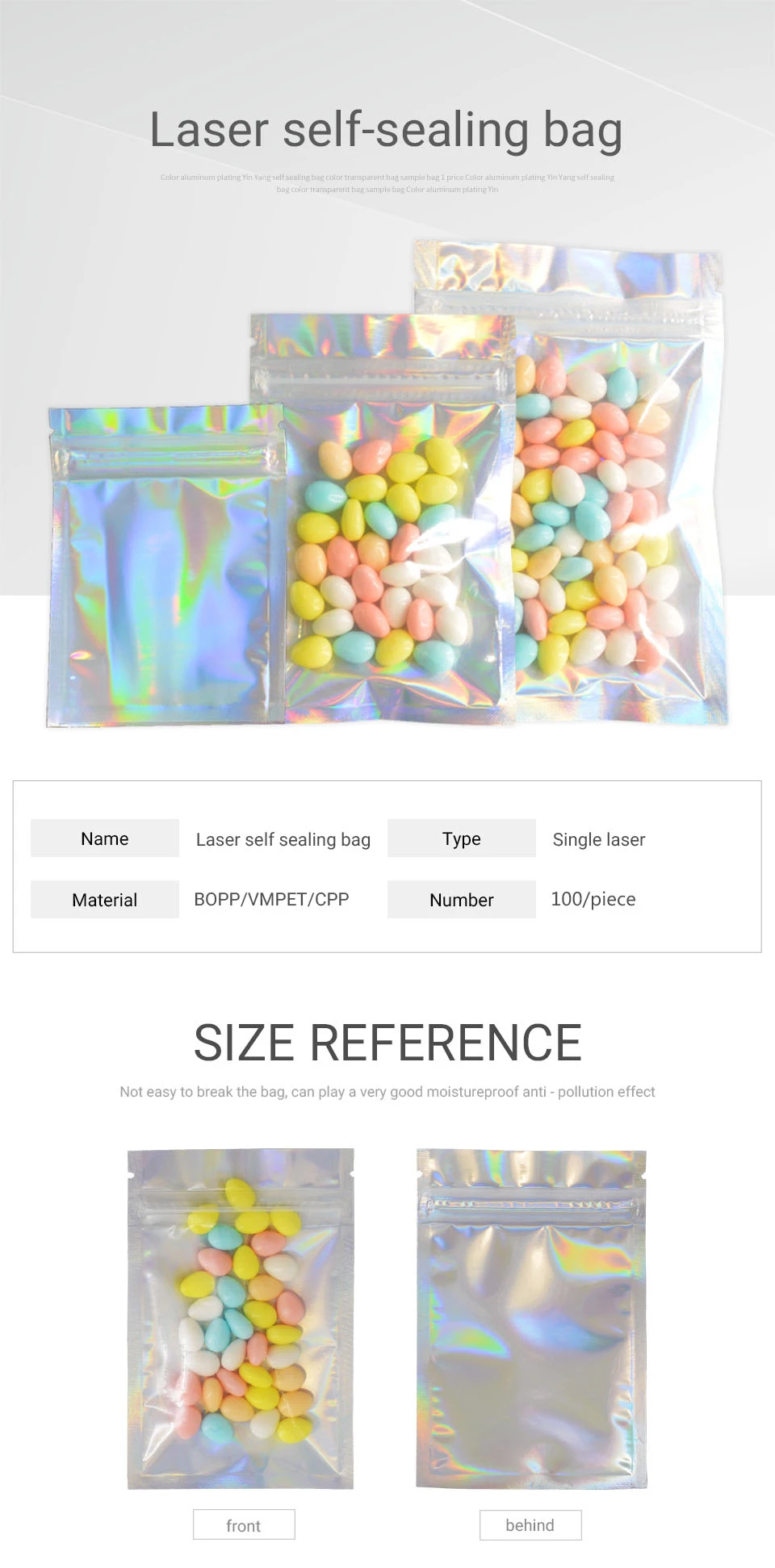 100 шт. голограмма фольга и прозрачные пакеты с замком-застежкой электронные аксессуары еда конфеты подарок губная помада Косметика Упаковка