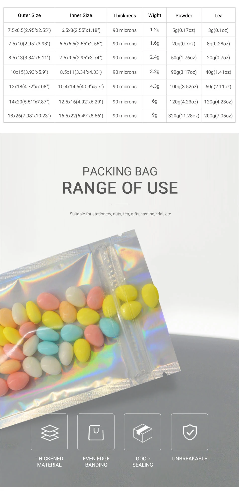 TypeFlat Zip lock Bags