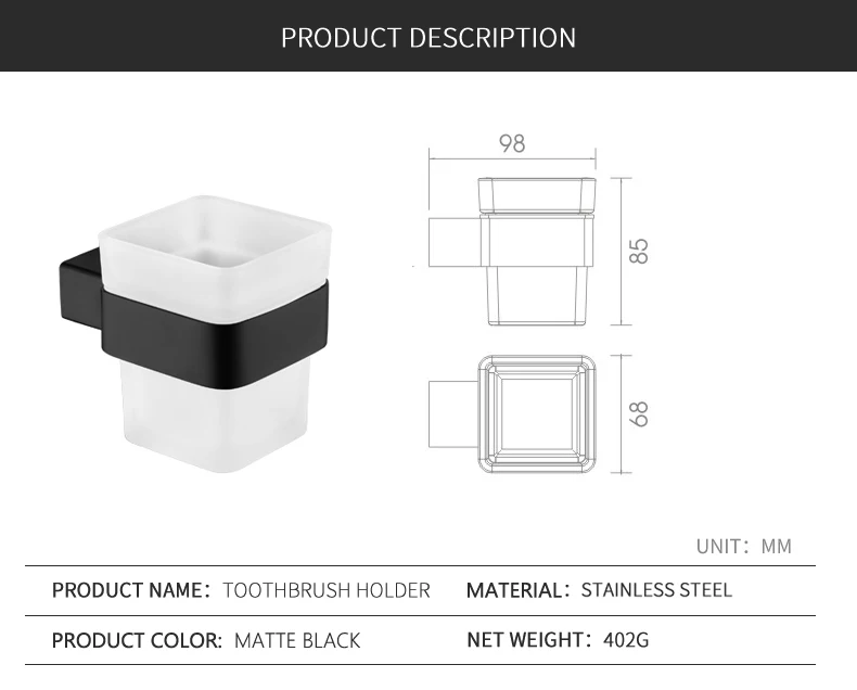 Матовый черный квадратный держатель для зубных щеток стакан для зубных щеток из нержавеющей стали и подстаканник настенный держатель из нержавеющей стали
