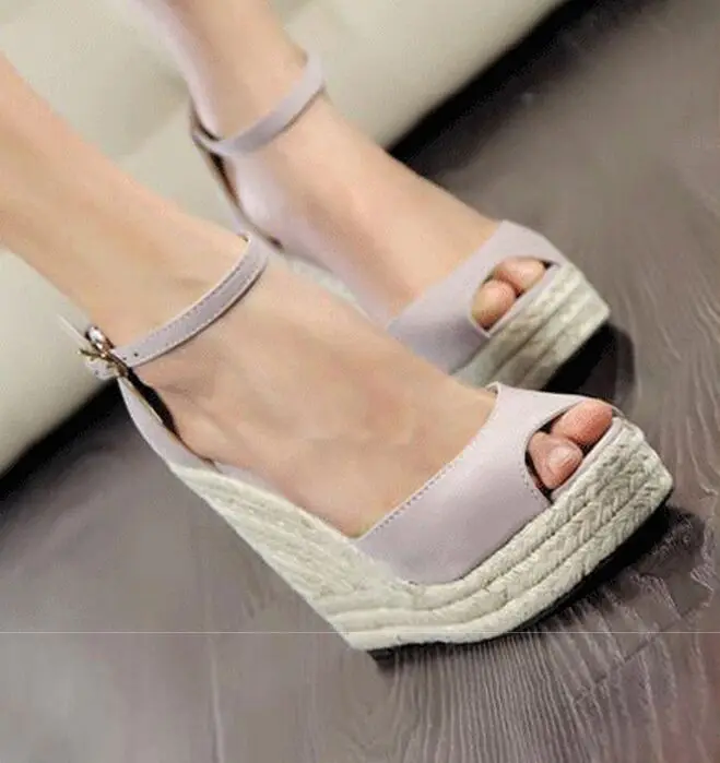 Женские босоножки с открытым носком на платформе и высоком каблуке; Босоножки на танкетке с пряжкой; Женская обувь; Женские босоножки на платформе и высоком каблуке; Высокий каблук; 665