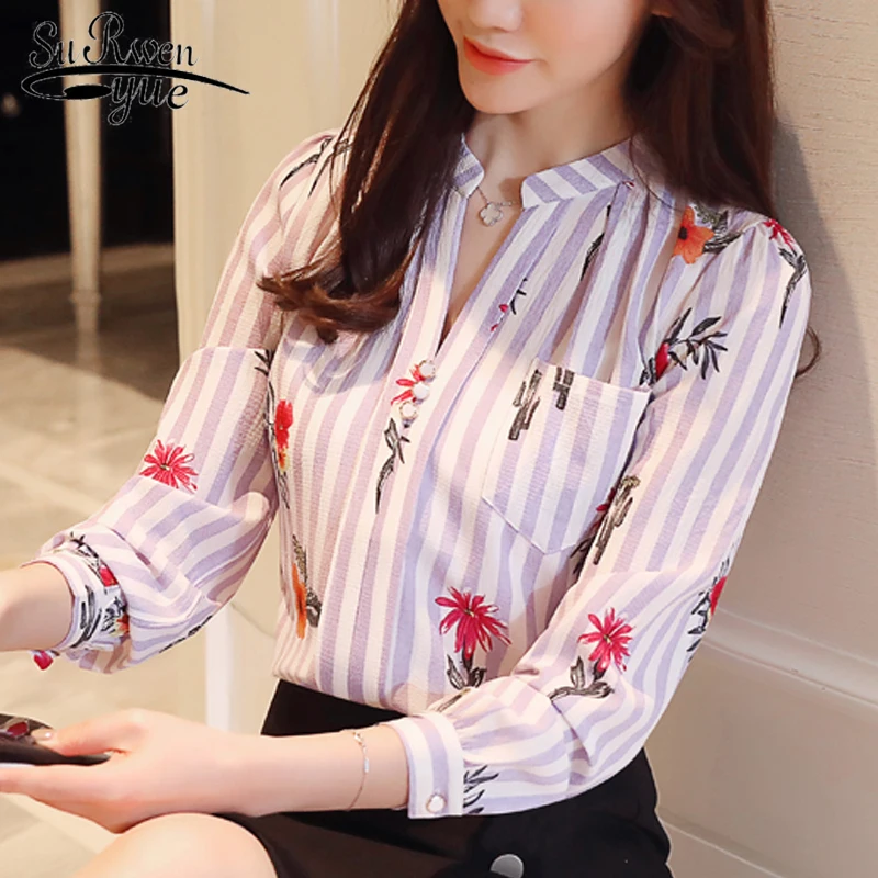 Модные женские блузки 2019, женская шифоновая блузка с длинными рукавами и принтом, женские топы, блузы блузы женские , офисные женские топы Блузка Z0001 40