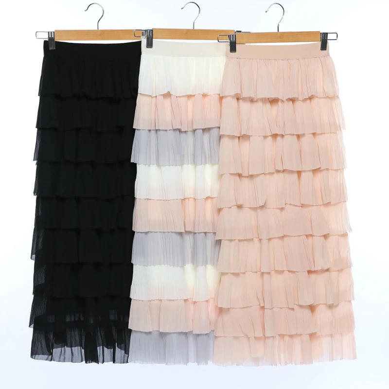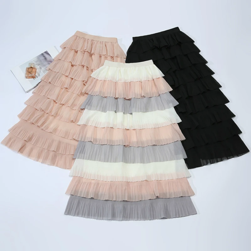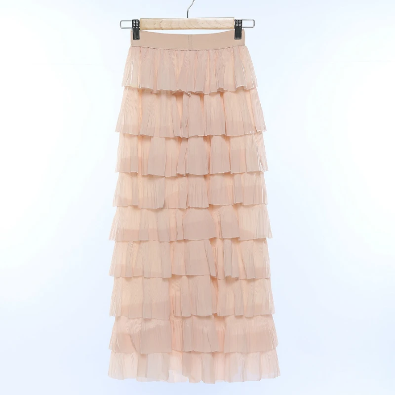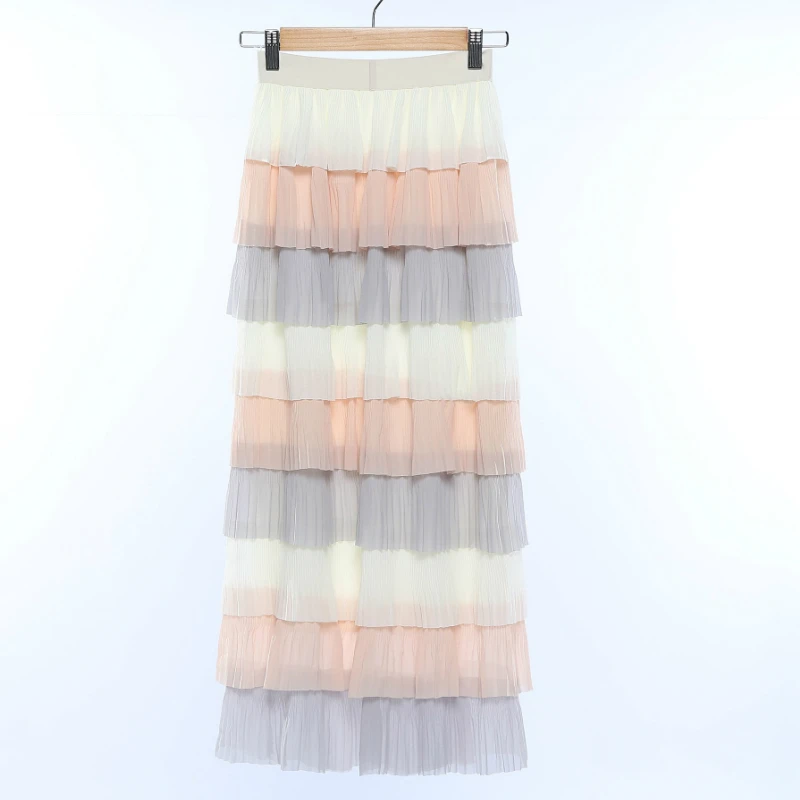 Женская многоцветная многослойная юбка-макси с высокой талией, элегантная длинная многослойная юбка розового цвета в стиле пэчворк для девушек