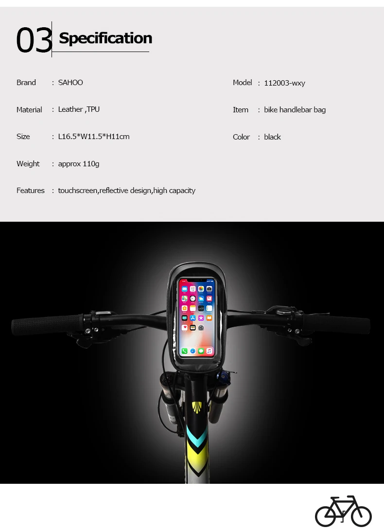 Подробная информация о продукте: Модель: 122003 Материал: ТПУ + 600D полиэстер Вес: 100 г Состояние: новое Цвет: черный Посылка Размеры: L19.5 * H9.5 * W11.5cm Продукт Особенности: Сенсорный экран из ТПУ: высокочувствительный сенсорный экран из ТПУ, поддерживает все сенсорные операции на вашем телефоне с сумкой. Светоотражающий дизайн: светоотражающий дизайн предупредительный и четкий при низкой видимости. Отражающий элемент повышает безопасность ночной езды. Водонепроницаемость: водонепроницаемый материал, сумка изготовлена из ТПУ, полиэстера, композитной углеродистой кожи, не беспокойтесь о дождливом дне снова. Простота установки и использования: дизайн ремня на липучке позволяет быстро установить и отпустить этот Велосипедный Чехол для телефона, никаких инструментов не требуется! Подходит для различных велосипедов. Многофункциональность: велосипедная сумка для телефона может содержать много необходимых инструментов для езды на велосипеде, таких как мобильный телефон, ключи, внешний аккумулятор, аудио кабель и так далее. Посылка включает: 1 * велосипедная сумка для телефона