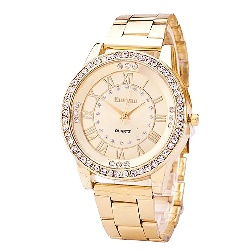 Часы наручные Kanima кварцевые для мужчин и женщин, роскошные брендовые наручные аналоговые модные, из нержавеющей стали, с бриллиантами, золотистого цвета, подарок