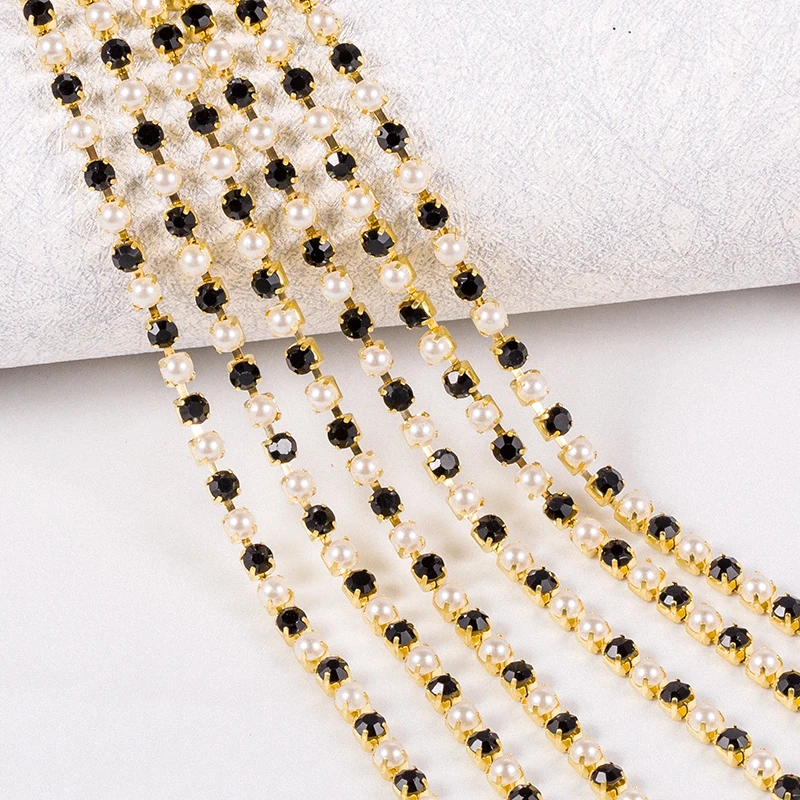 Стразы из АБС-пластика с жемчугом, стеклянные стразы, серебрянаязолотая цепочка с отделкой стразами, свадебные аппликации, аксессуары для поделок, 210 ярдов