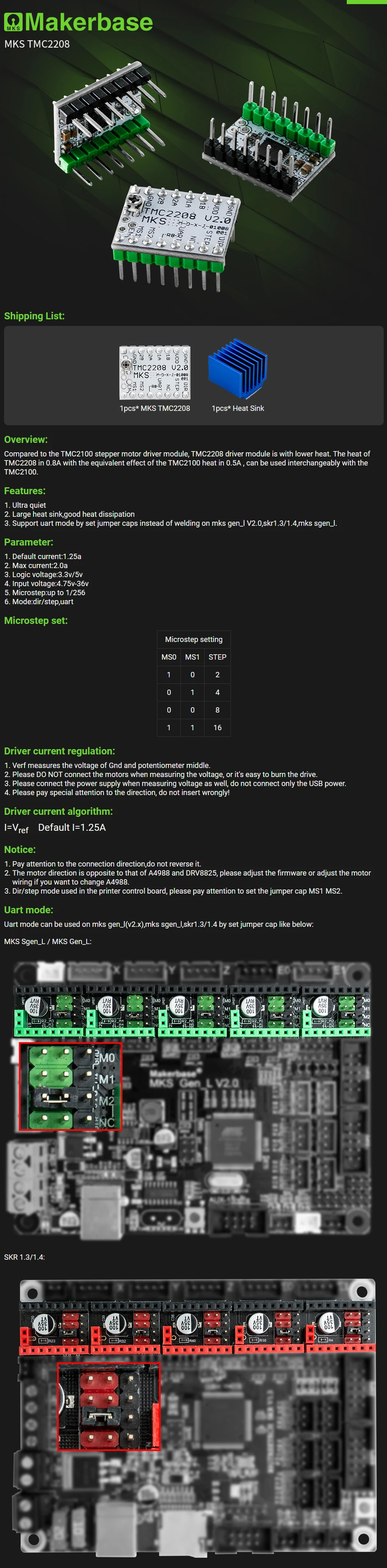 Драйвер шагового двигателя Makerbase MKS TMC2208 2208, детали для 3D-принтера SGen_L Robin Nano