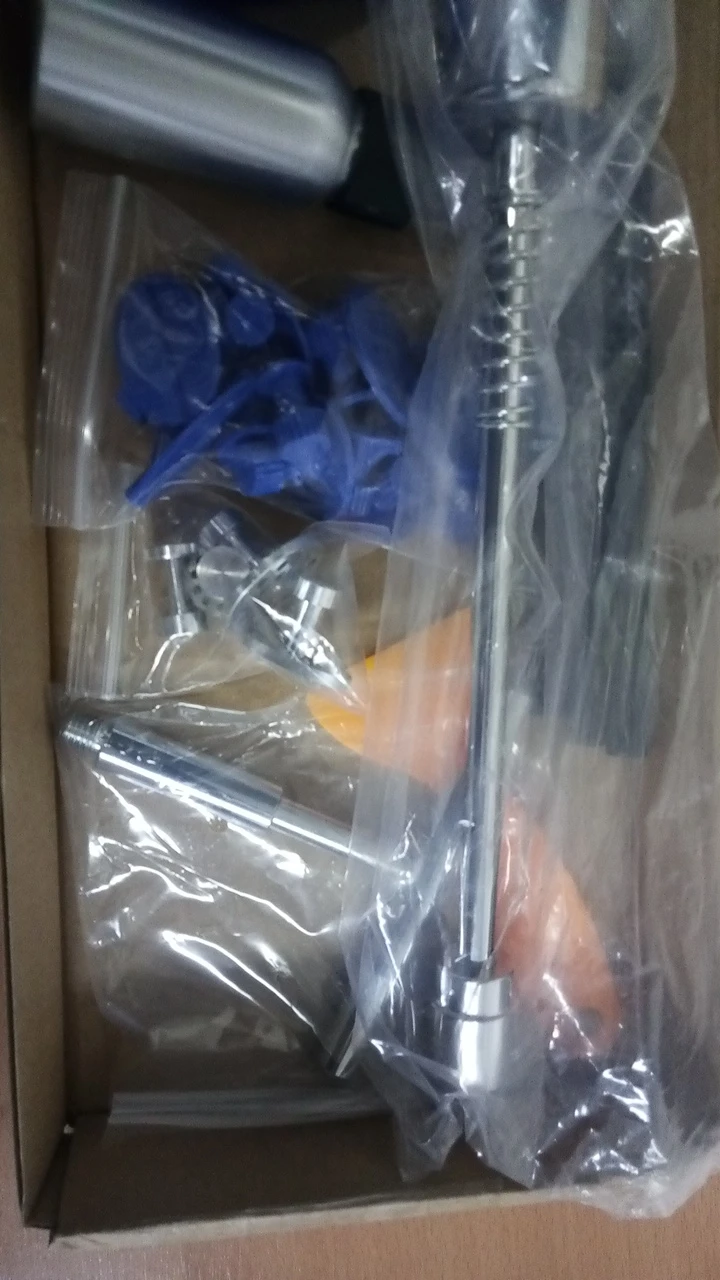 Заказ пришел за 50 дней. Комплектность соответствует.На вид товар отличний. Как использую в деле отпишусь.Я думаю что все будет ok.Заказ не отследживался.Есть вмятина на балончике распилителя. Но є то мелочь.
