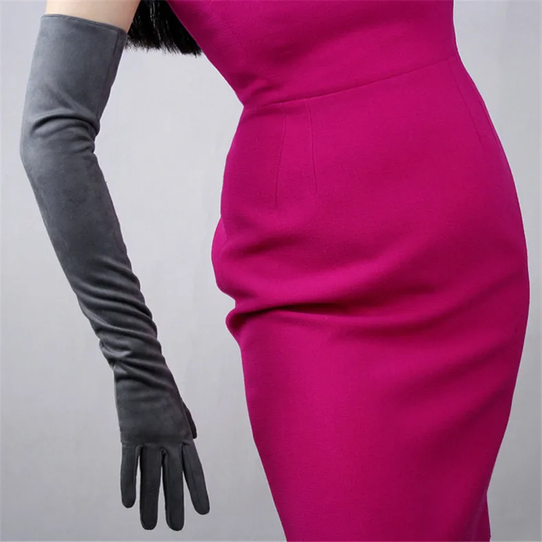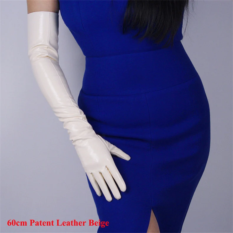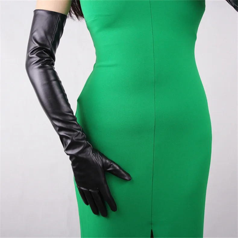 60 см длинные кожаные перчатки Экстра длинные перчатки из искусственной кожи PU искусственная кожа эмуляция овчины черные сенсорные перчатки женские WPU07-60
