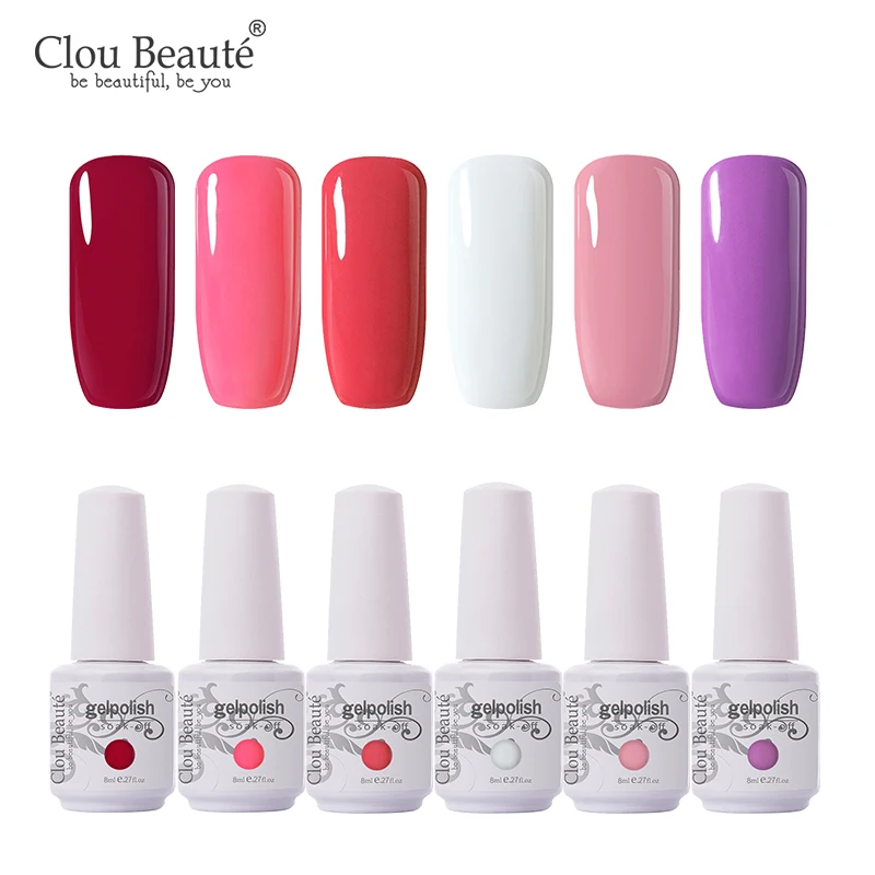 Cluu Beaute 6 шт./лот УФ светодиодный лак Блестящий лак для ногтей розовый гель лак для ногтей отмачиваемый красный долговечный гель лак 8 мл