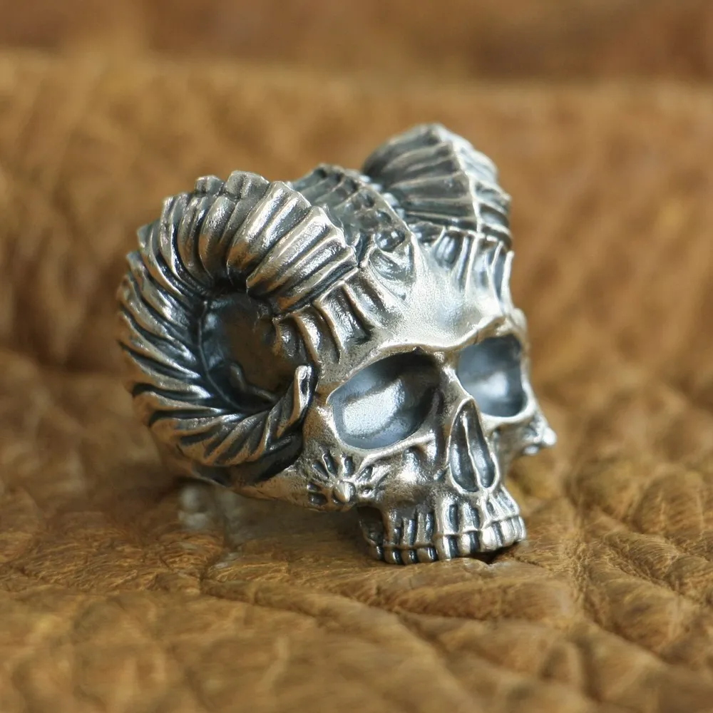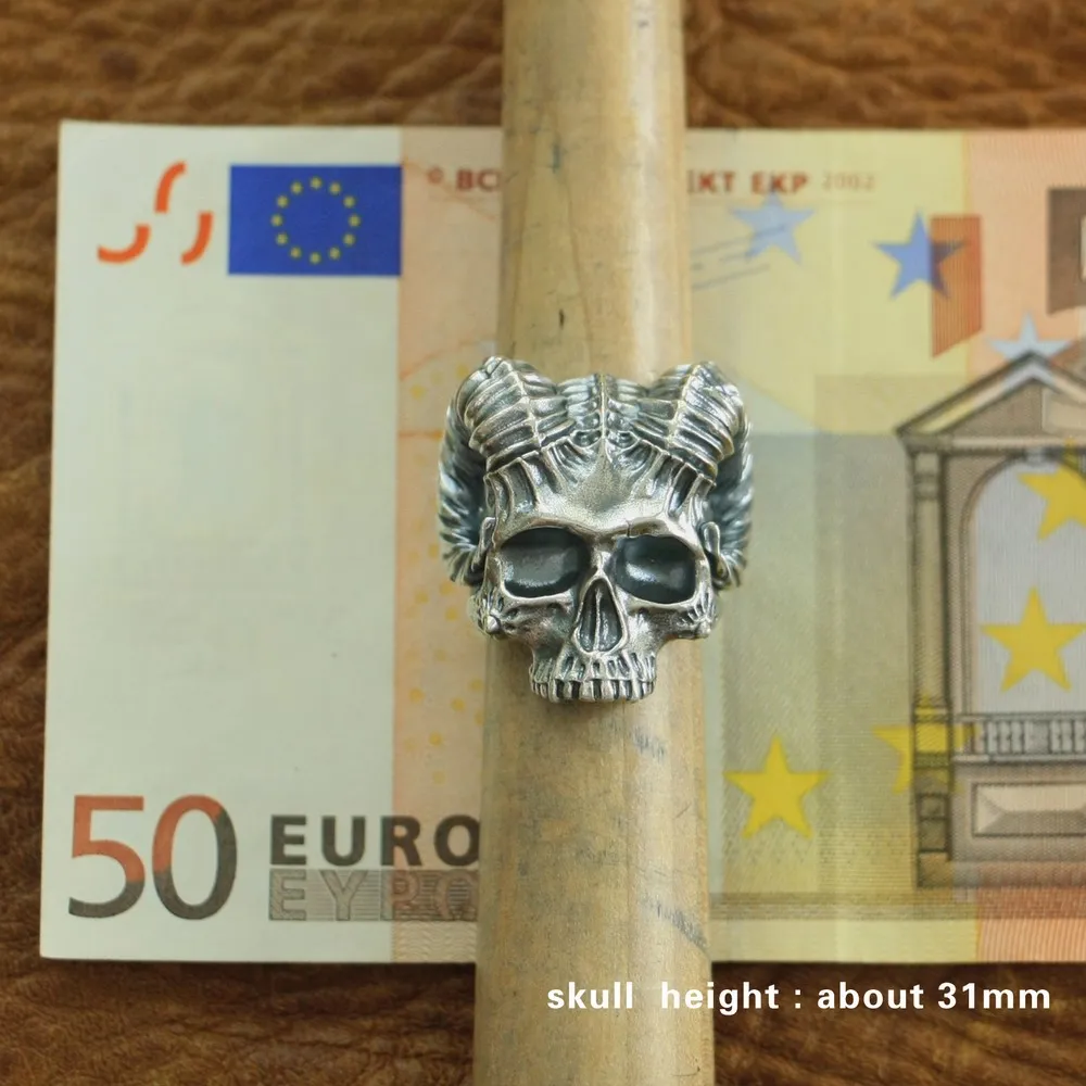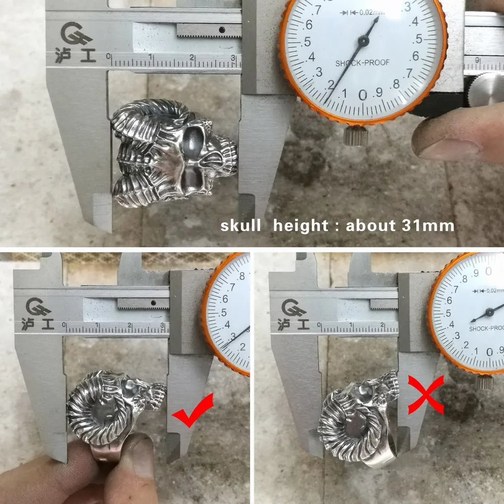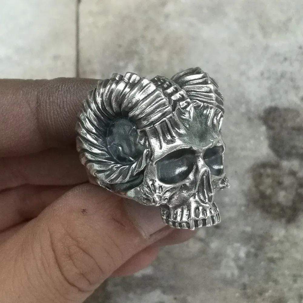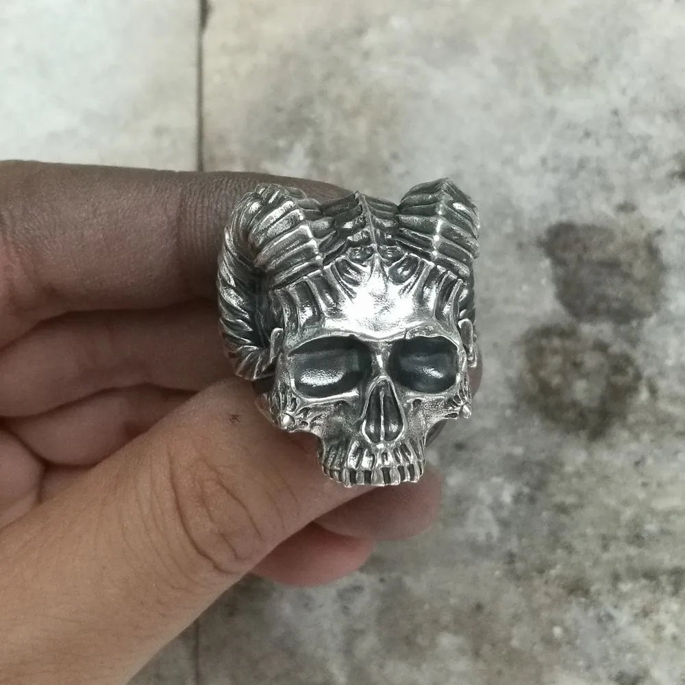 Мужское байкерское кольцо в стиле панк с черепом и серебряным рогатым 925 пробы TA114, размер США 7 15