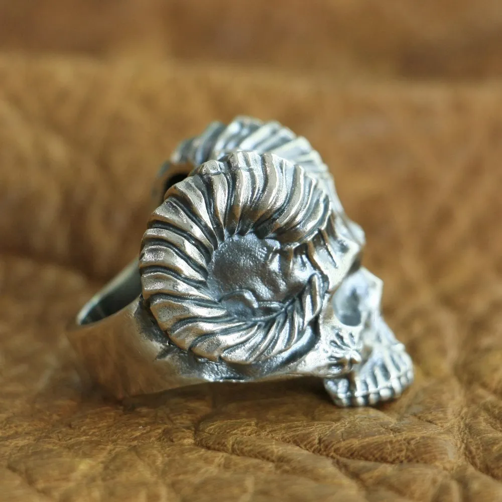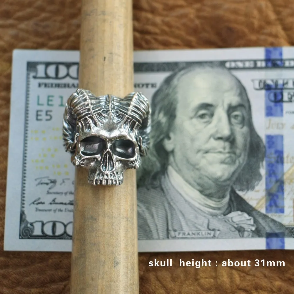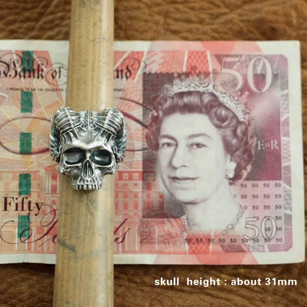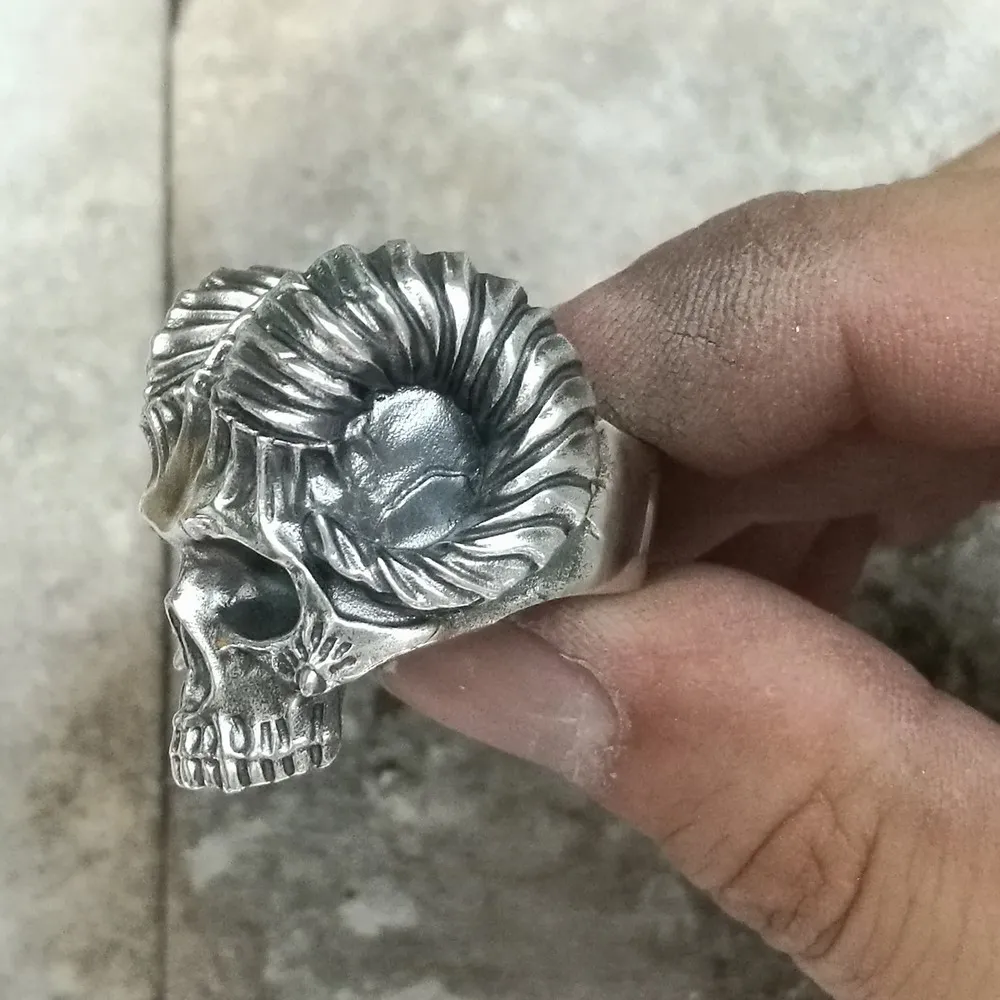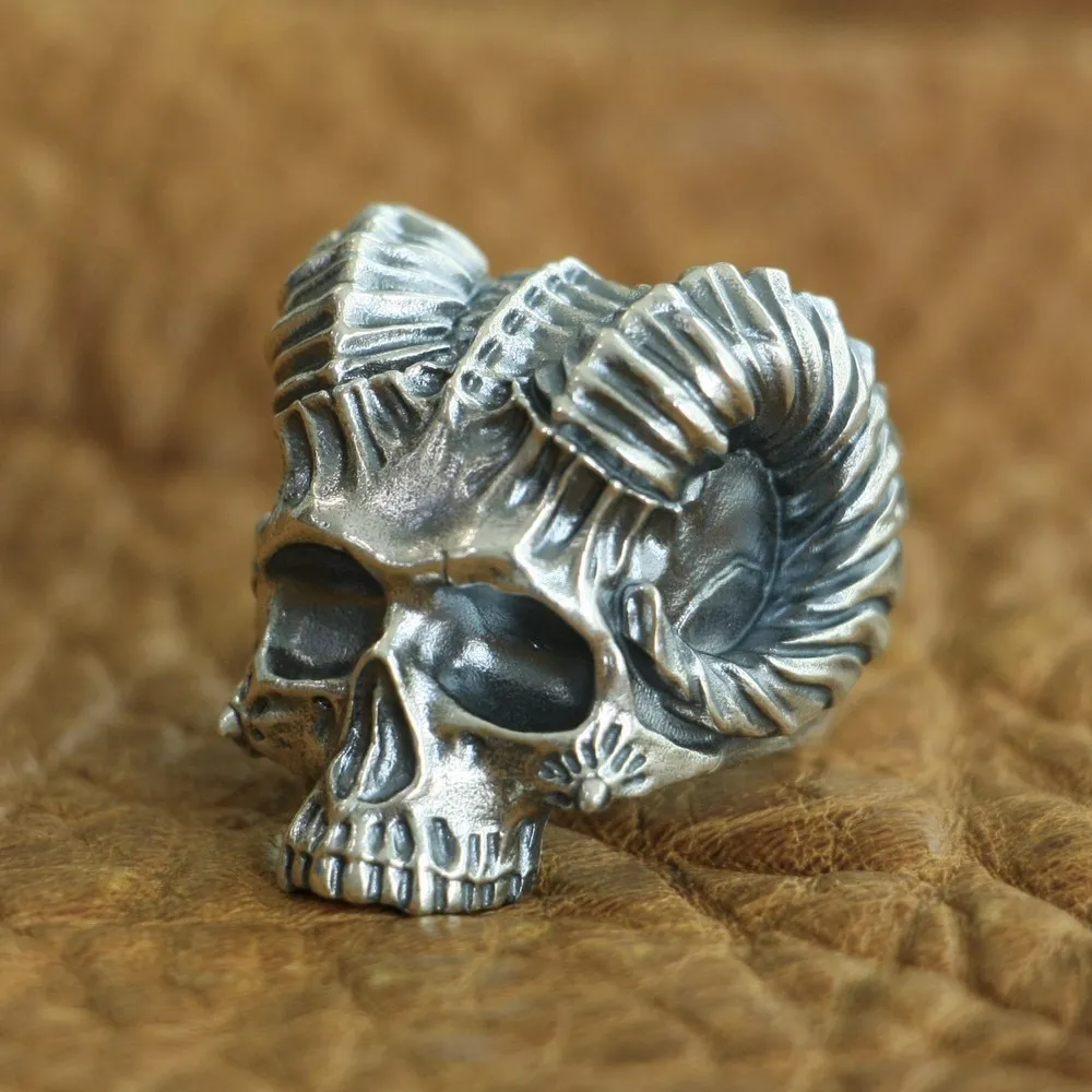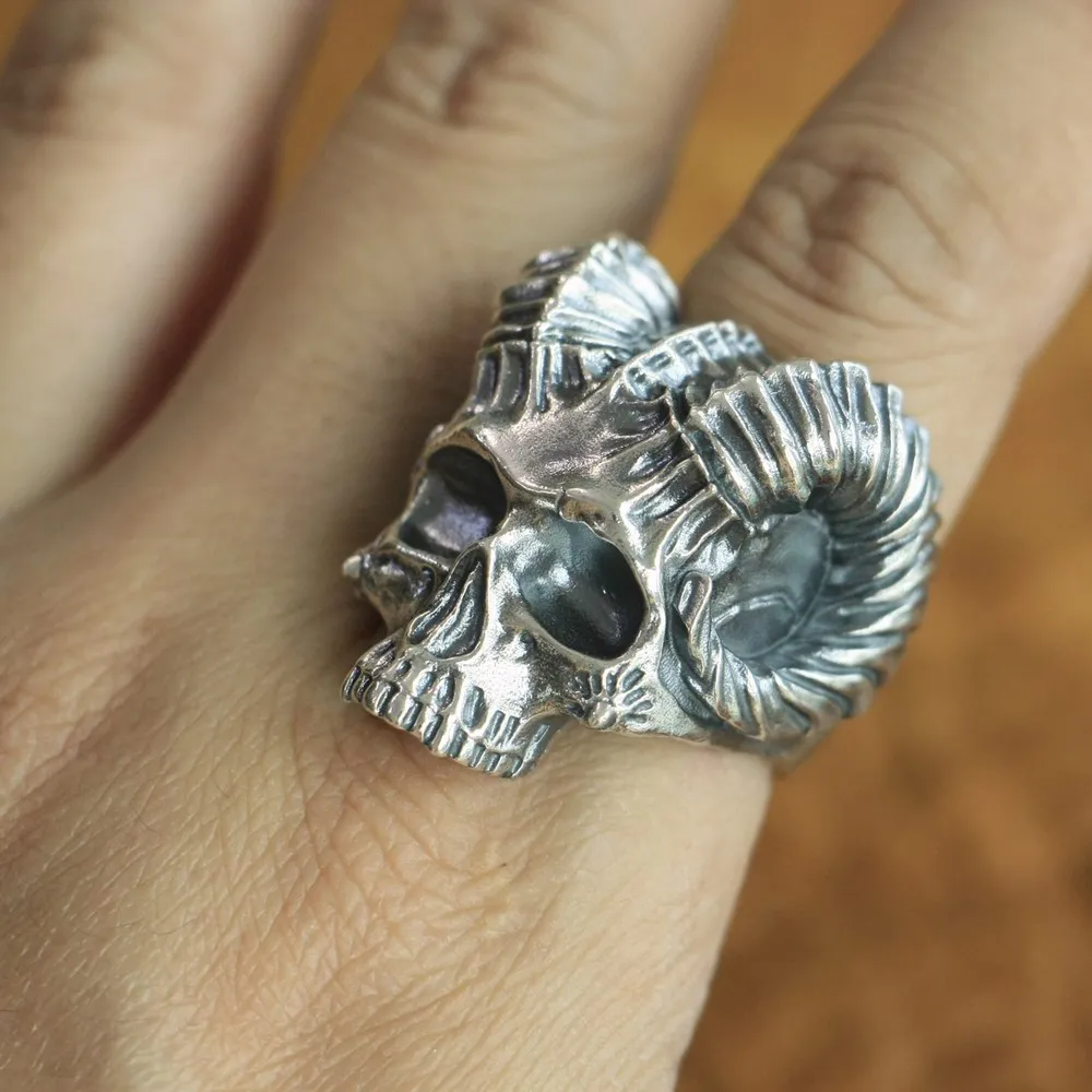 Мужское байкерское кольцо в стиле панк с черепом и серебряным рогатым 925 пробы TA114, размер США 7 15