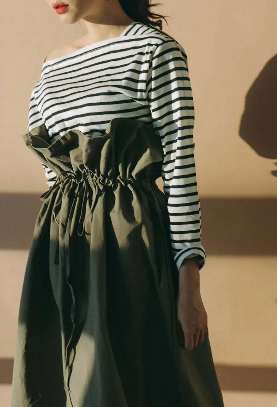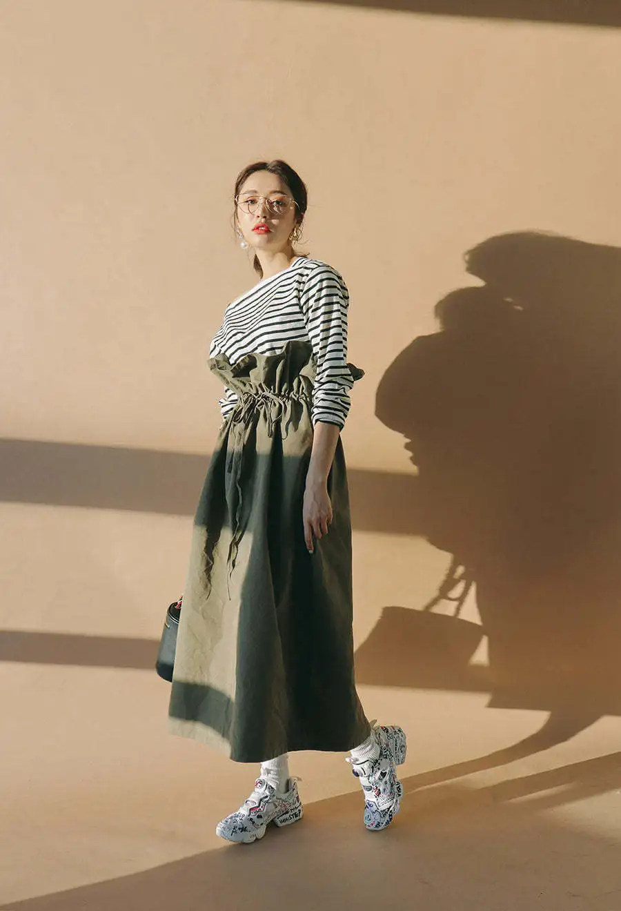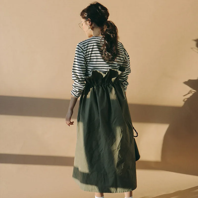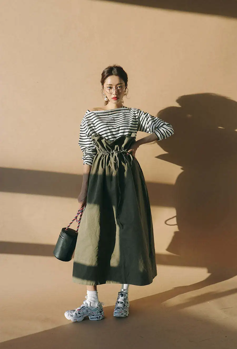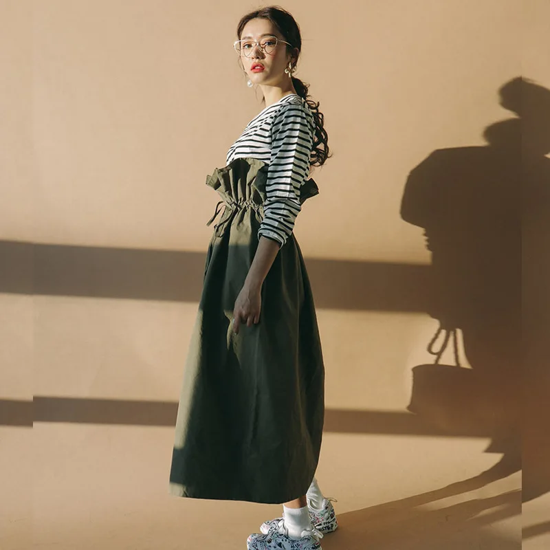 LANMREM 2020 новая модель из чистого хлопка зеленые широкие длинные юбки оборки Высокая талия на шнуровке плиссированные женские модные корейские брюки WA927