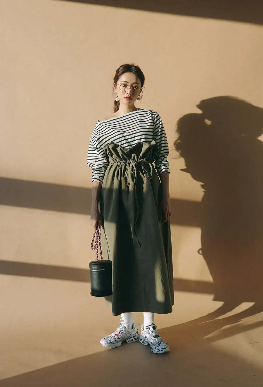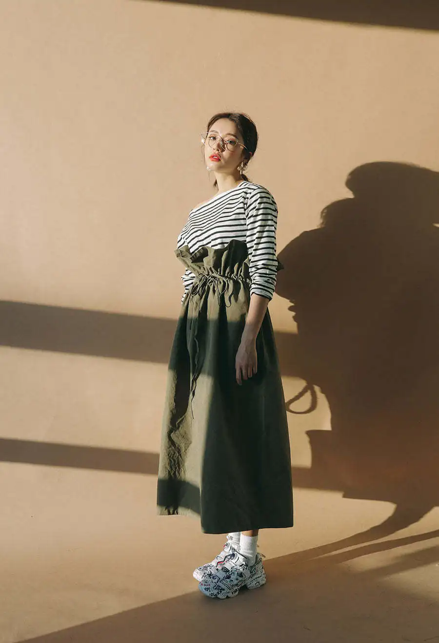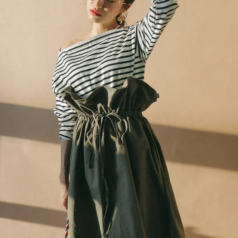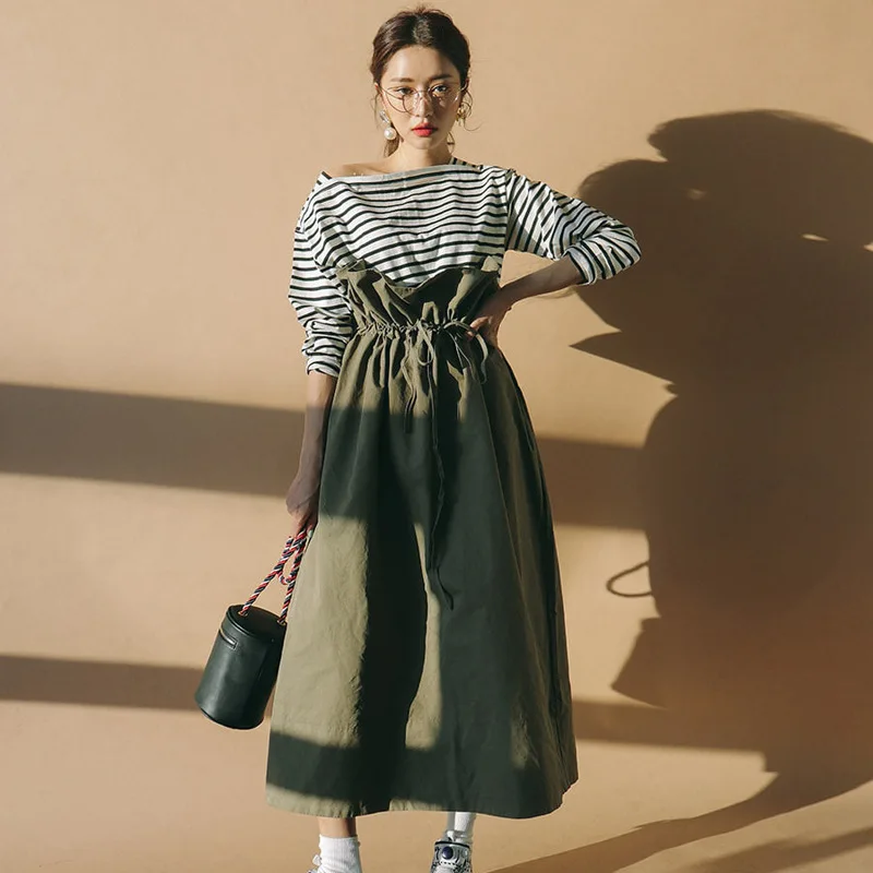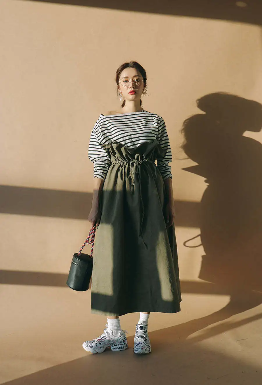 LANMREM 2020 новая модель из чистого хлопка зеленые широкие длинные юбки оборки Высокая талия на шнуровке плиссированные женские модные корейские брюки WA927