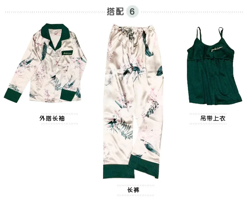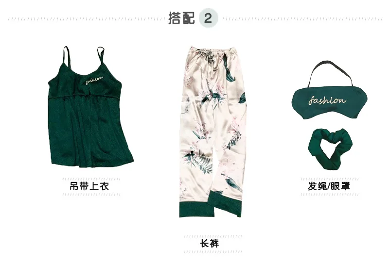 Пижама Fdfklak, пижама из искусственного шелка, комплект из 7 предметов, домашняя одежда с цветочным принтом, весна-лето 2018