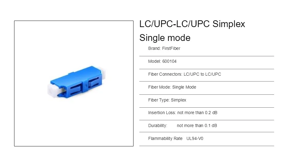 Одномодовый пластиковый оптоволоконный адаптер FirstFiber LCUPC к LCUPC, оптоволоконный коннектор