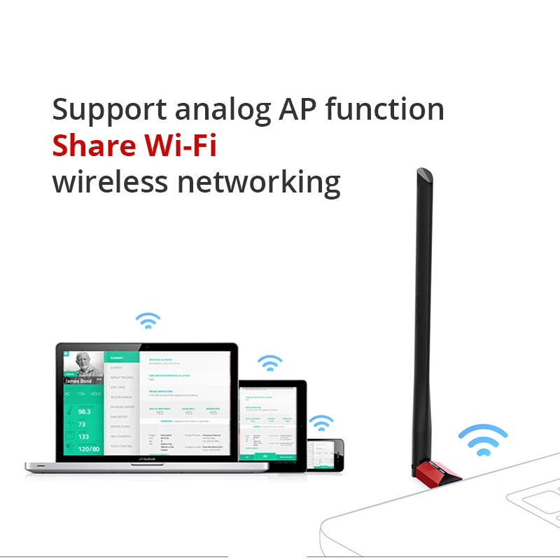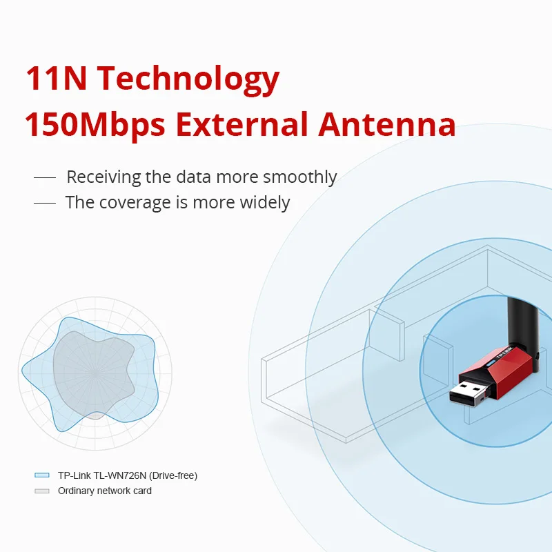 Использование беспроводного чипа 150 Мбит/с, внешняя антенна с высоким коэффициентом усиления 5 дБи, по сравнению со встроенной антенной, в открытой среде может сделать передачу беспроводного сигнала и расстояние передачи дальше, В сложной беспроводной среде с несколькими барьерами или несколькими помехами для обеспечения лучших возможностей беспроводного проникновения прием данных более плавный, более широкий охват.