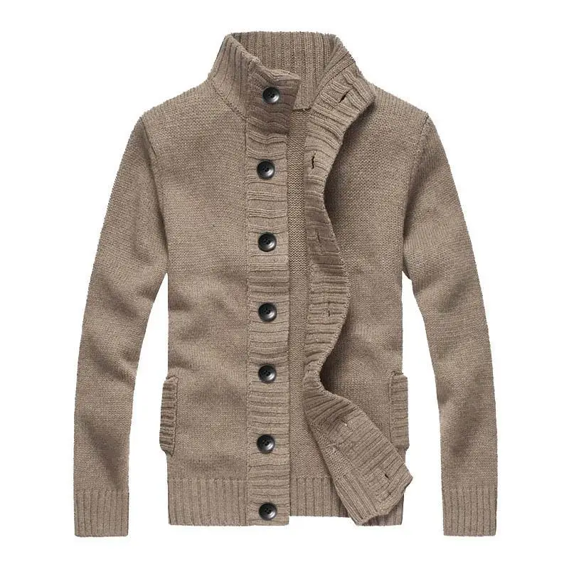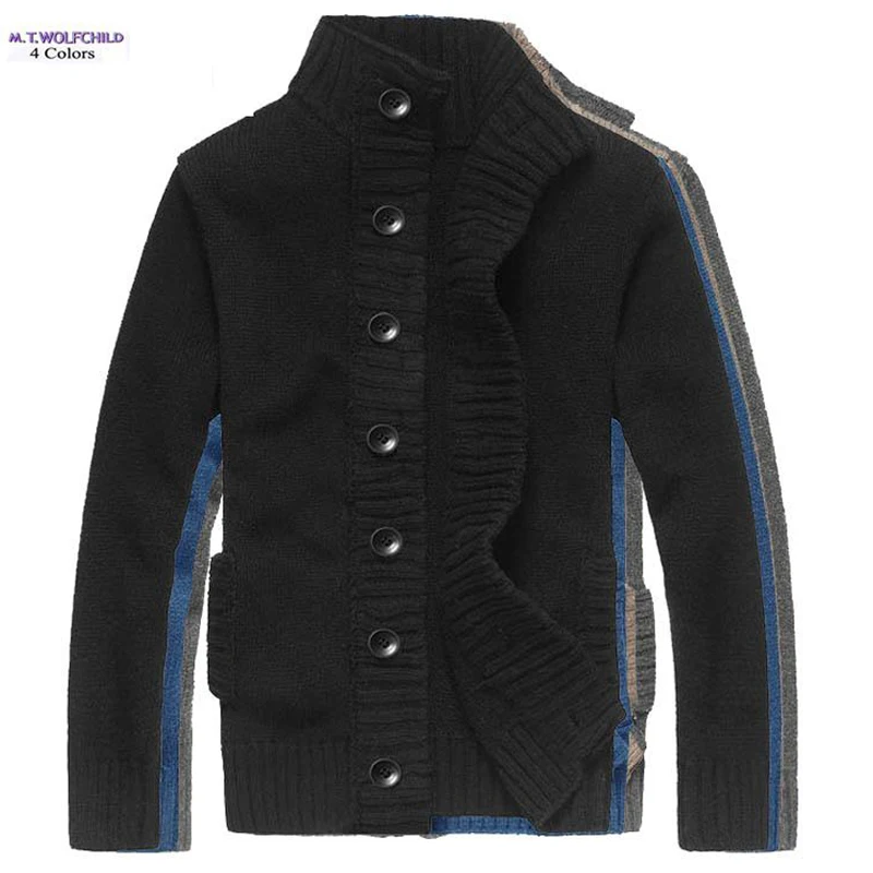 Высококачественные зимние мужские шерстяные свитера с длинным рукавом и высоким воротником 2020, Повседневный Кардиган, плотная вязаная верхняя одежда, модные мужские пальто