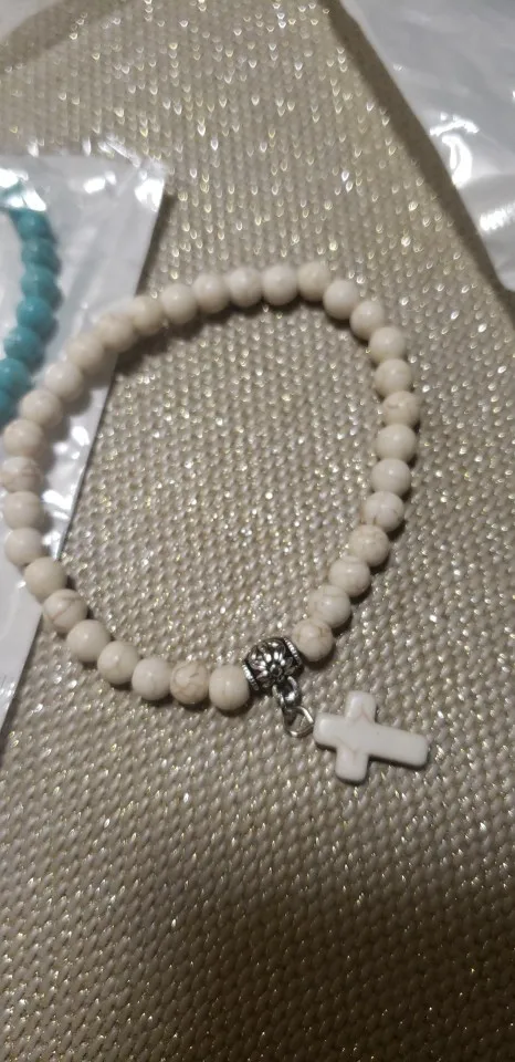 Винтажный Крест из натурального камня 6 мм, браслет с бусинами, шарм, мужской, синий, бирюзовый кулон, браслет из нескольких нитей, женская бижутерия
