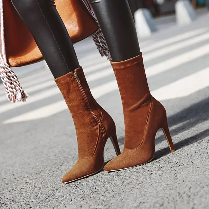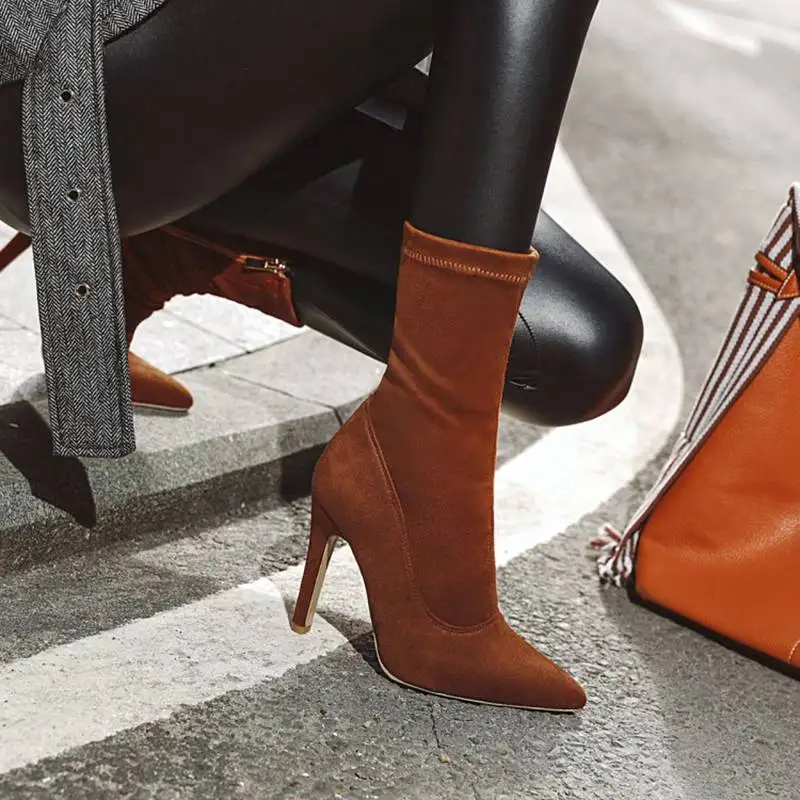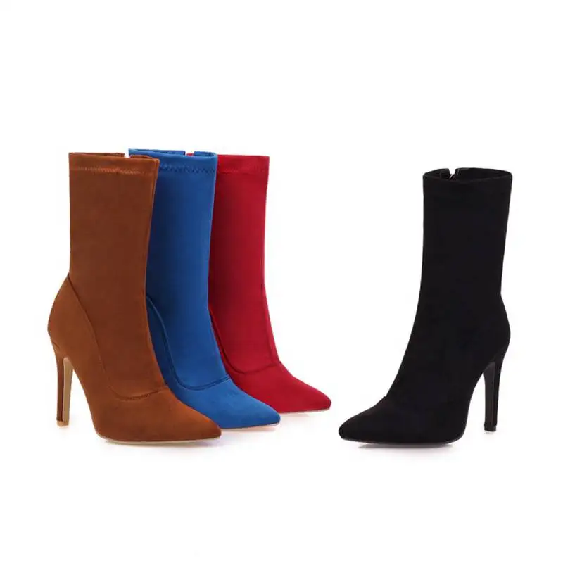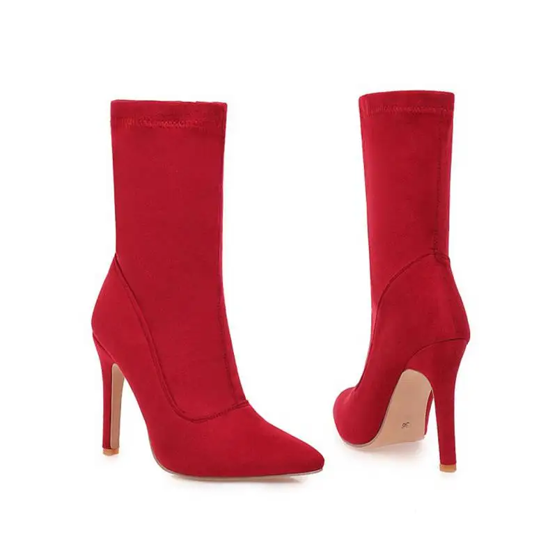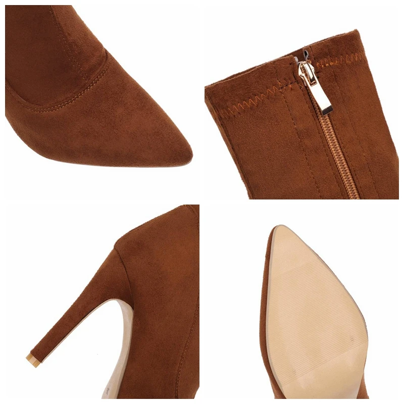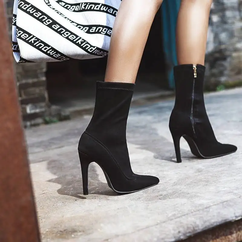 Брендовые новые женские ботильоны, женская обувь, плюс размер, большой размер 48 выше колена; Ботинки на тонком высоком каблуке пикантные вечерние ботинки; botas de mujer; Большие размеры 2020