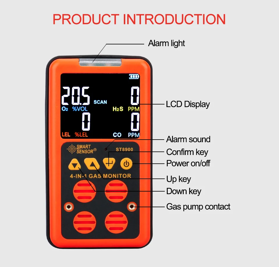 Gas TypeOxygen / carbon monoxide / hydrogen sulfide / combustible gas