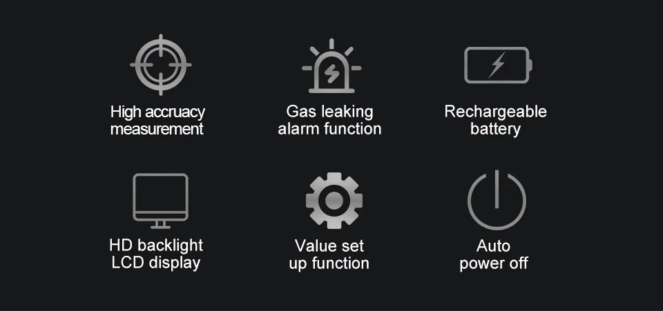 Measuring rangeO2: 0~30% VOL CO : 0~999 PPM H2S: 0~500 PPM Combustible Gas: % LEL