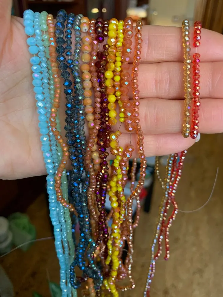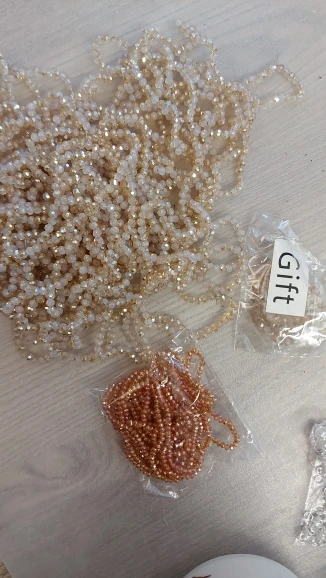 спасибо большое за бусины. качество отличное. стекло. упаковано хорошо. количество не считала, но визуально много и все бусины целые. рекомендую. буду заказывать еще