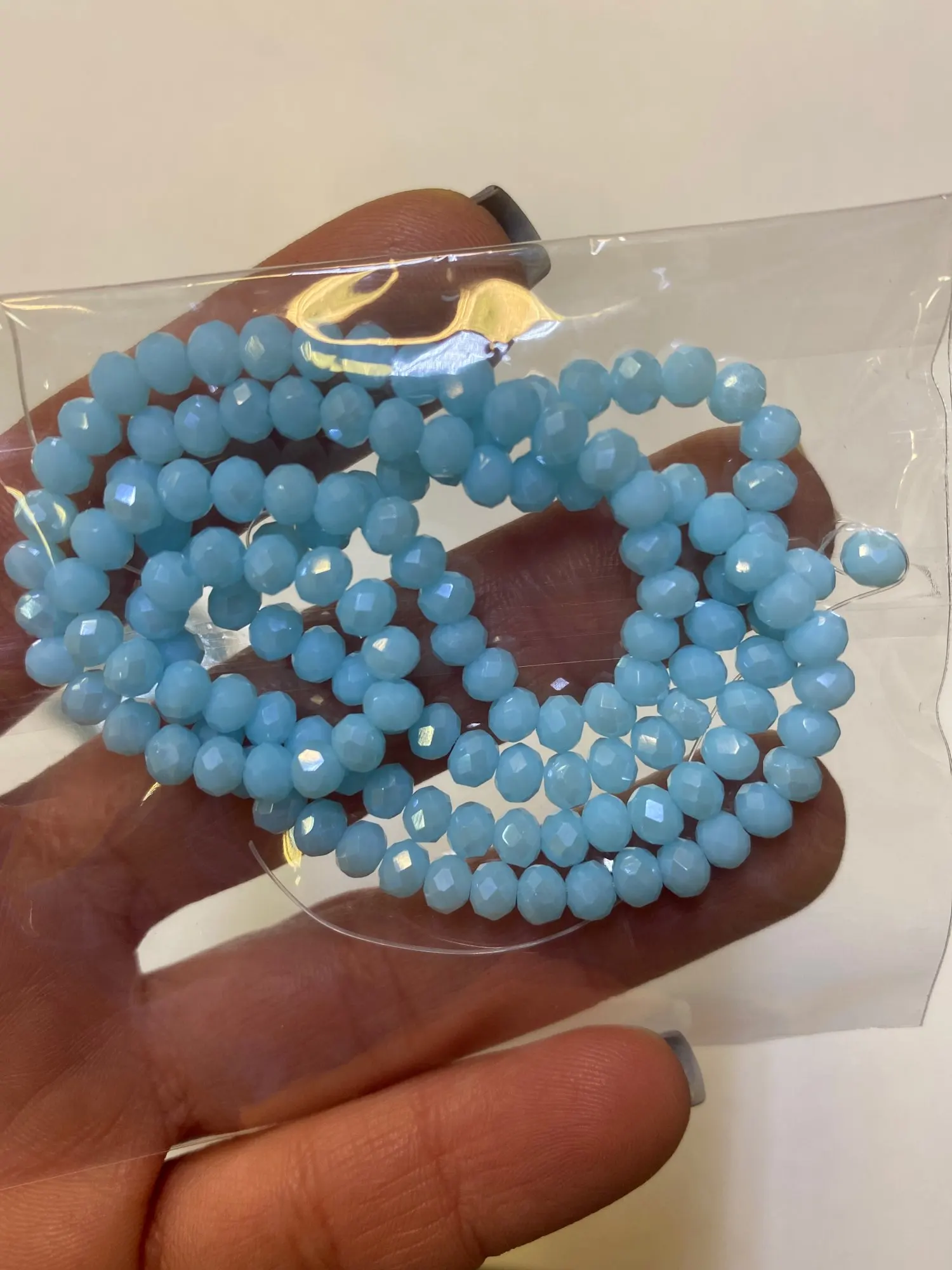 Бусины красивые, граненые, мерцают при свете, очень красивый эффект, от глубокого синего до чёрного. Заказывала 2 цвета - синий и шампань, пришли в одной упаковке. Очень довольна, буду заказывать ещё, продавца и его магазин рекомендую.