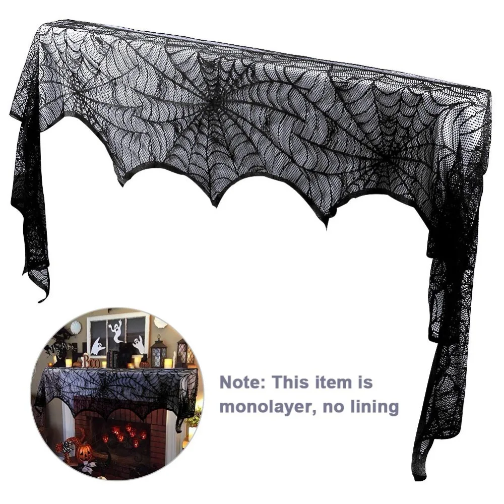 1. Черный кружевной камин мантия шарф особенности паутины дизайн.2. Дисплей на мантии, над внутренним дверным проемом, Хатч, буфет или как фон.3. Веселые жуткие украшения для Хэллоуина и аксессуары для вечеринки для круглогодичного использования.