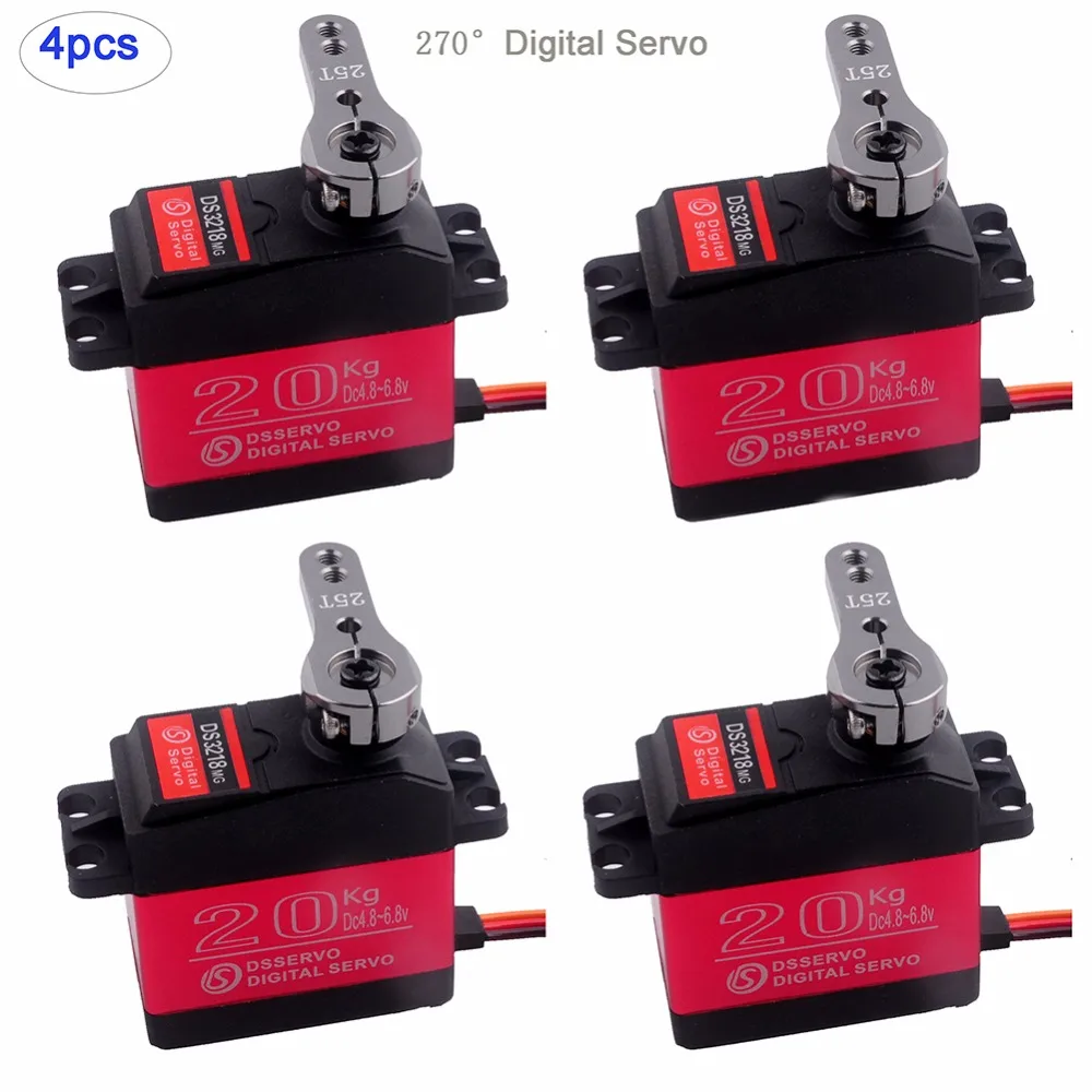 4 шт. DS3218 270 градусов цифровой RC сервопривод, 20 кг Крутящий момент водонепроницаемый металлический Радиоуправляемый мотор сервопривода для RC автомобиля Лодка робот RCmall FZ3136