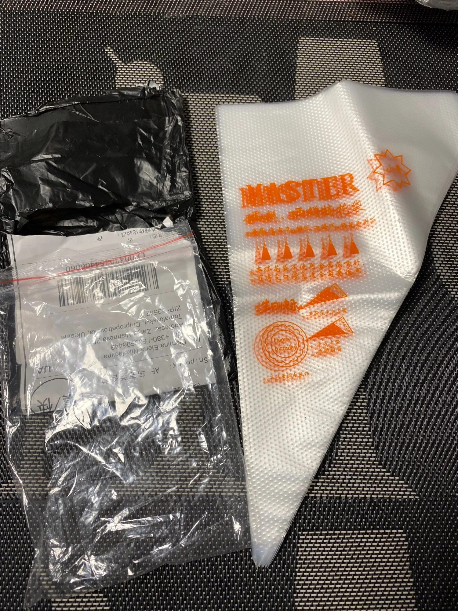 Отлично упаковано в дутую упаковку, все дошло целое и невредимое, около месяца шло. Не очень поняла, как кондитерский мешок прикреплять к насадкам, буду разбираться