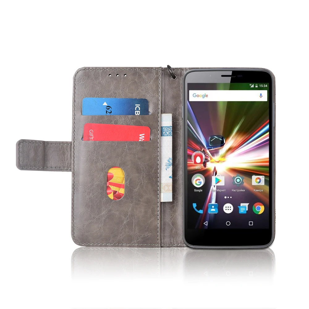 Кожаный чехол-книжка для MTS Smart Turbo 4G Fundas с цветочным принтом 100% специальный чехол-кошелек с подставкой и ремешком