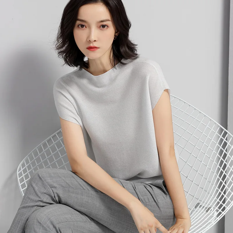 Женская трикотажная футболка, с рукавами летучей мыши и круглым вырезом, из вискозы, лето 2018