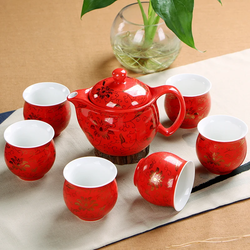 Свадебные украшения, китайские чайные наборы, 6 чайных чашек, 1 чайный горшок. Кунг-фу чай оптом самые высокие продажи Самый креативный