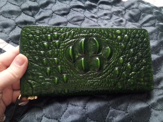 Достойный кошелек, похоже на кожу. Заказывала себе в красном цвете, довольна! Правда размер чуть больше, чем указано. Рекомендую!)))