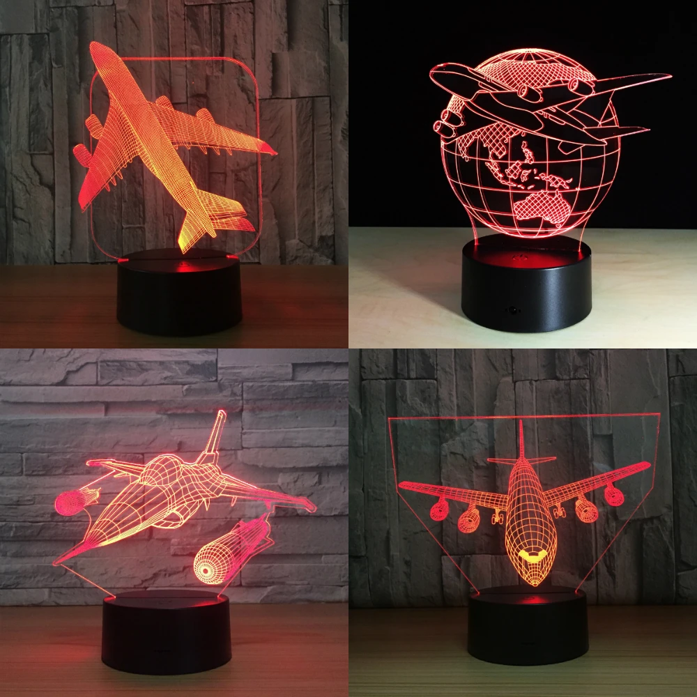 Item NameJet AirPlane Warplane Fly To Earth Aircraft Helicopter 3D LED Lamp