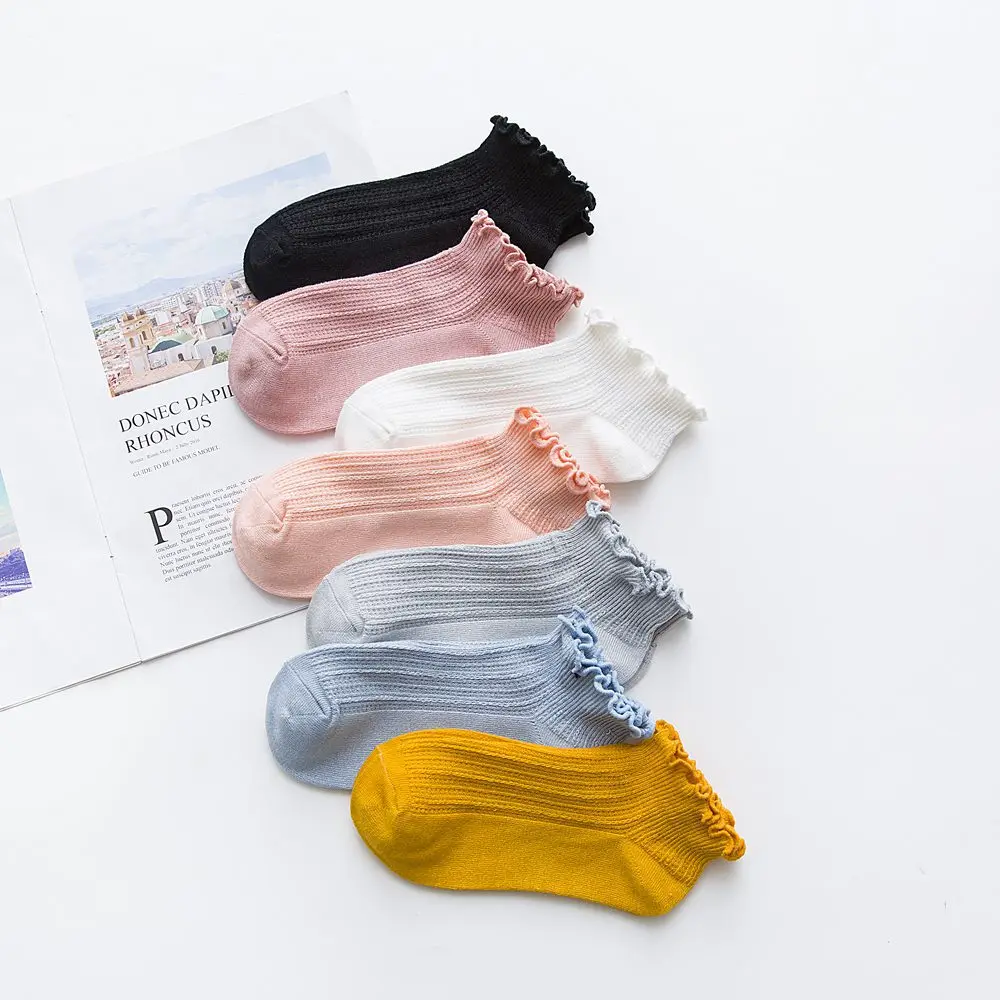 Носки женские хлопковые в стиле Харадзюку, милые однотонные с короткие Дышащие носки, летние