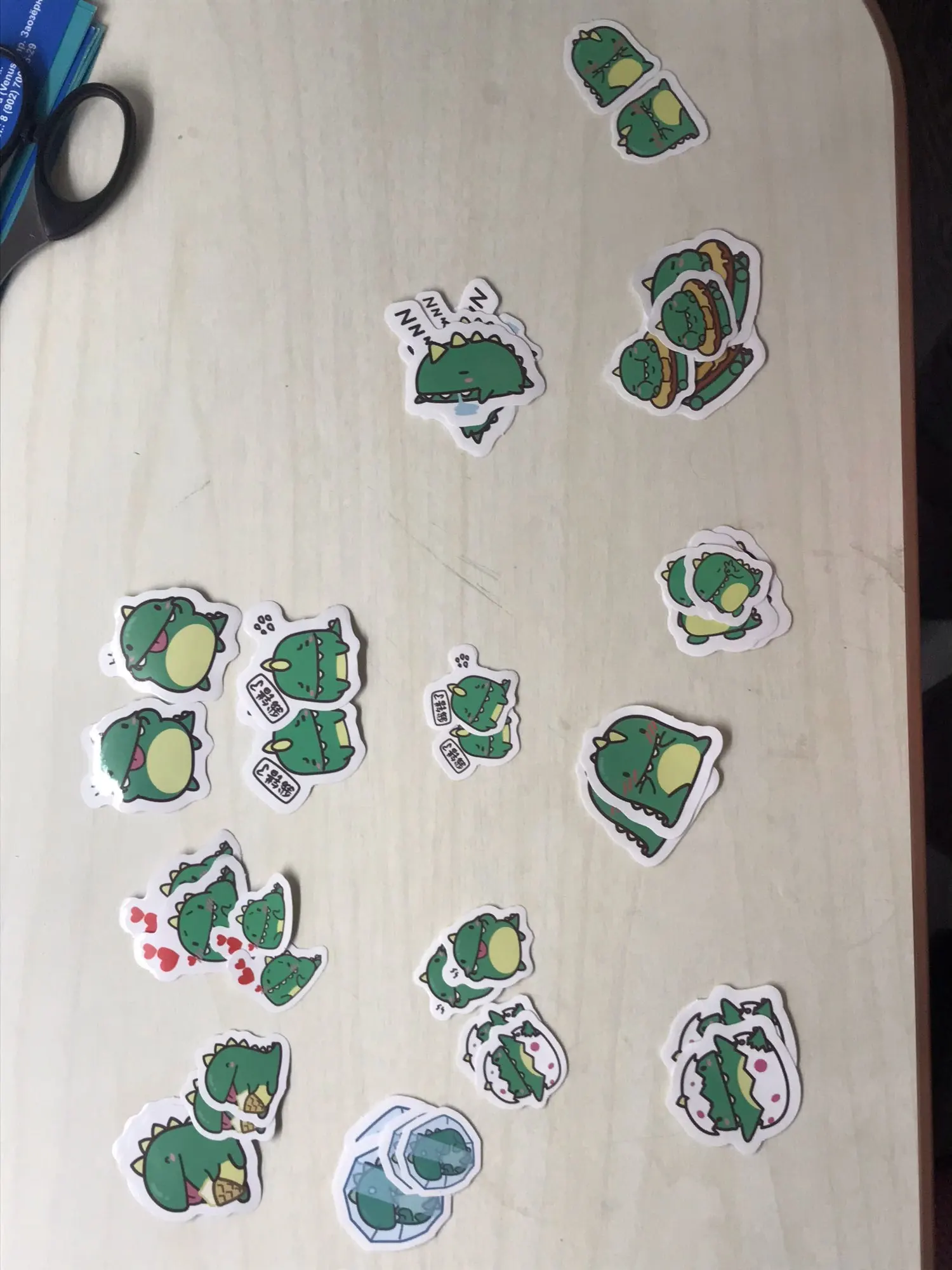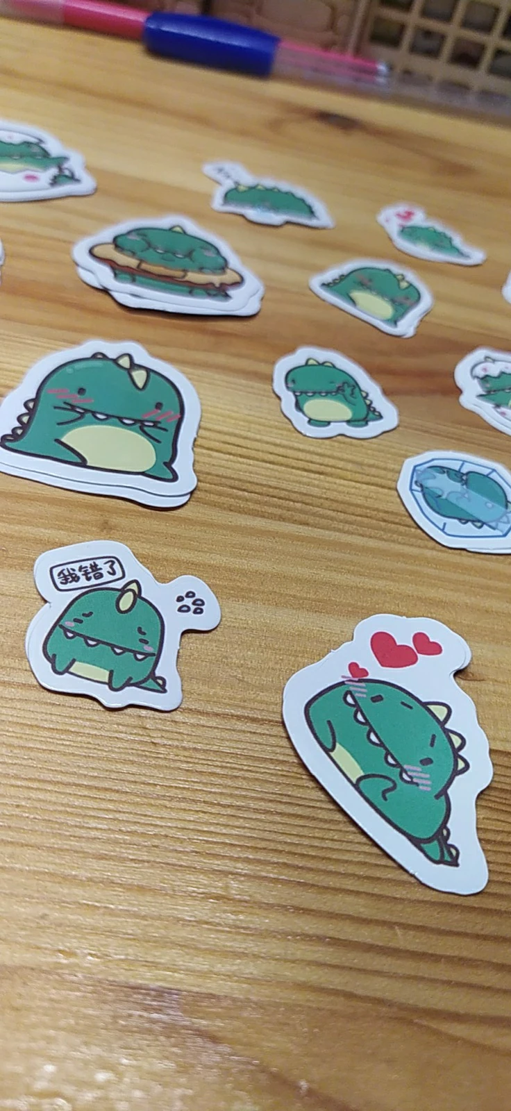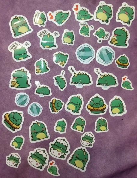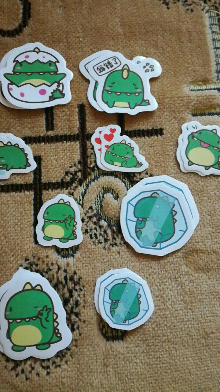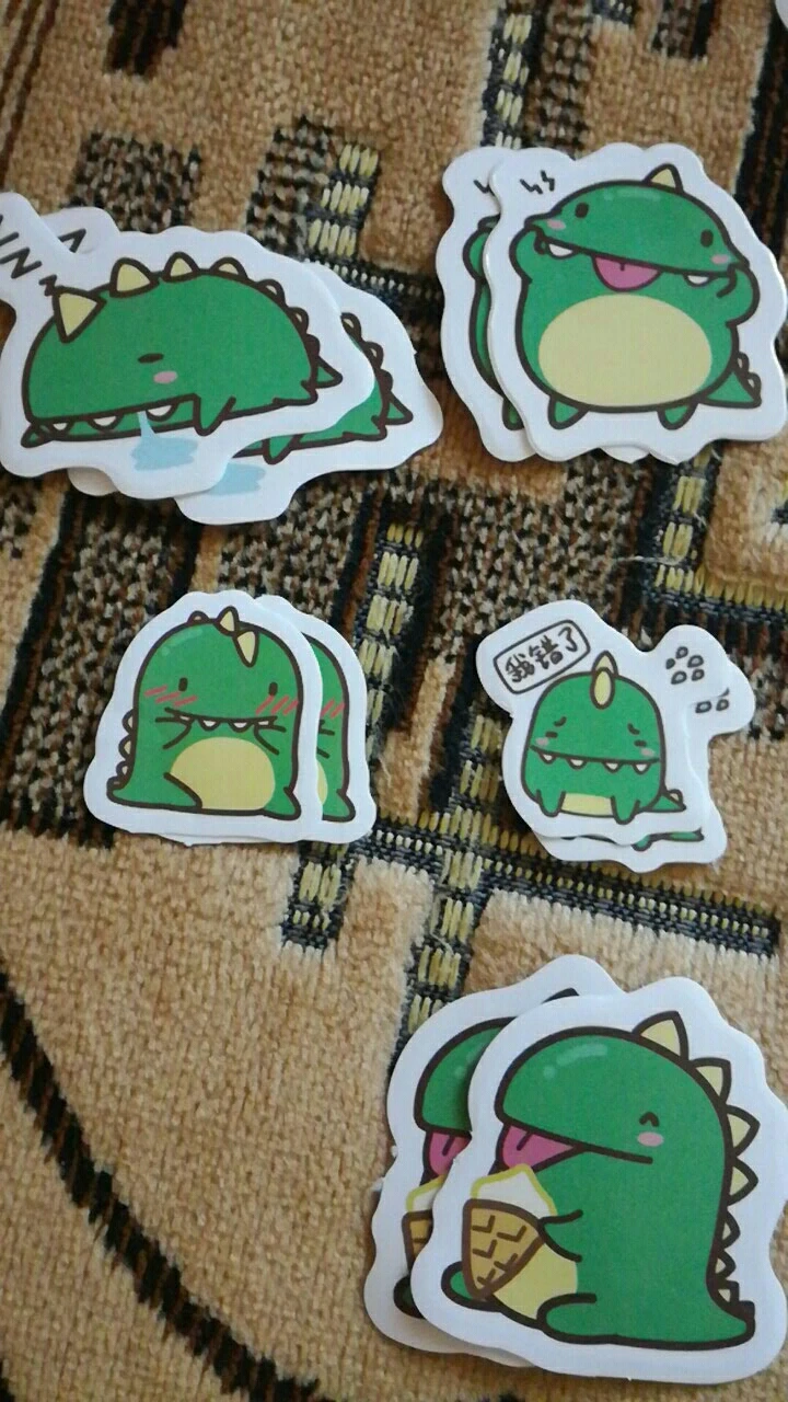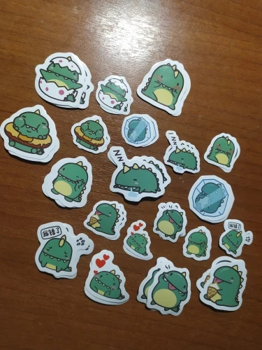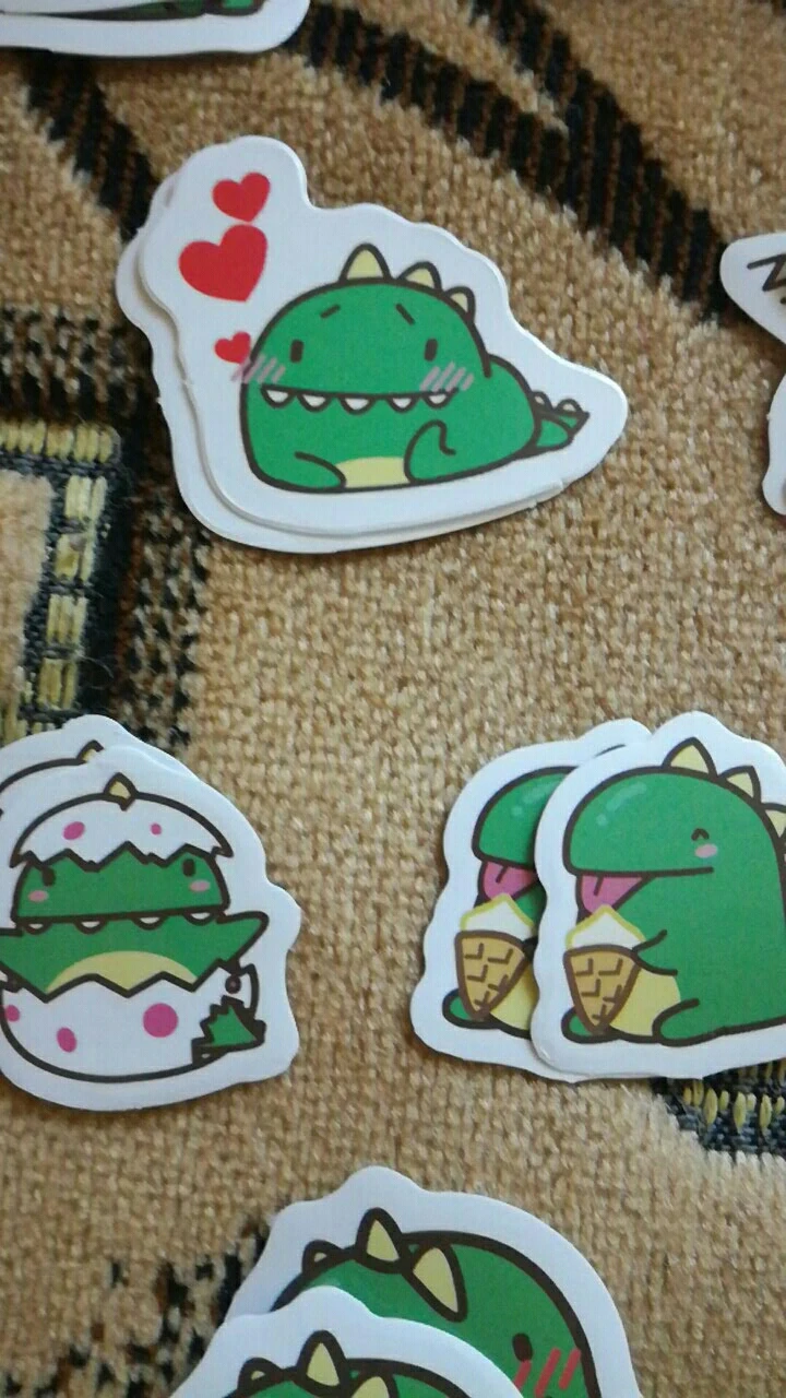 Милые и красивые наклейки. Покрыты лаком, поэтому приятные на ощупь. У каждого динозаврика 2 размера и у каждого размера по 2 штуки наклеек (итого 4 одинаковых динозаврика). Это не всегда хорошо, но для меня это плюс. Заказывала 11.11 пришли 3.12 (где-то 22 суток), до Томска (Россия). Качеством и ценой очень довольна!