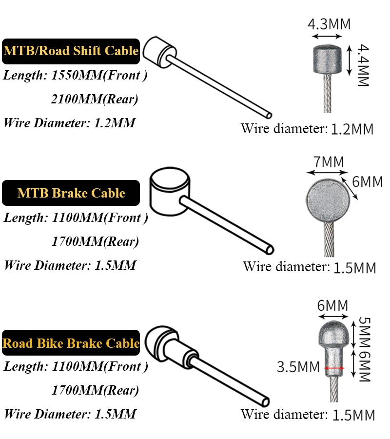 1 Флейта тормозафлейта заднего переключателя тормоза для горного и дорожного велосипеда, внутренняя линия 2100 мм, 1550 мм, 1700 мм, 1100 мм