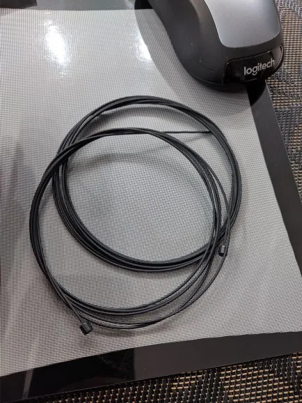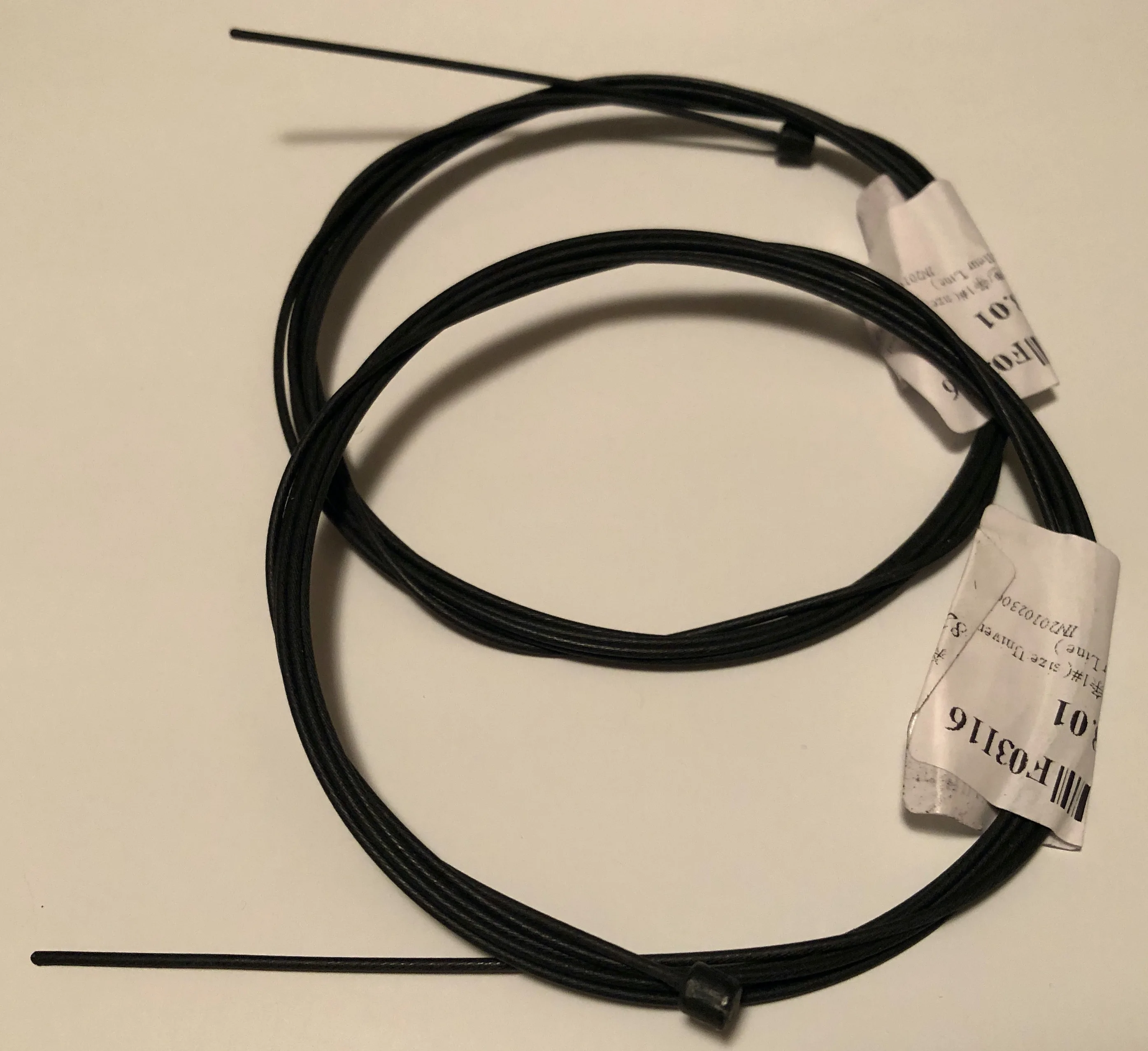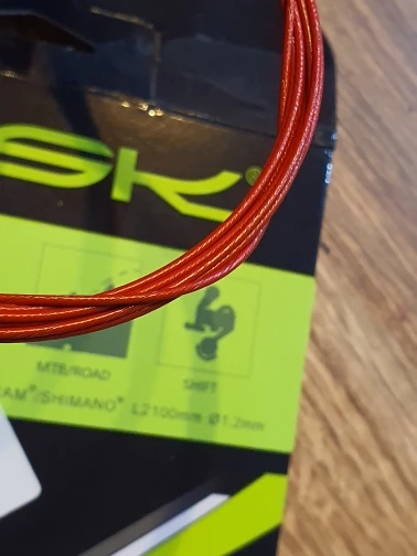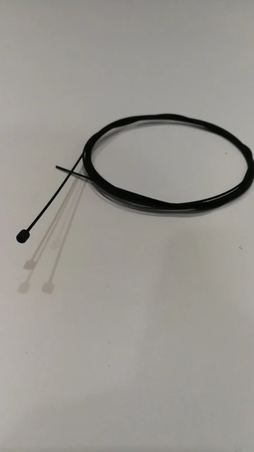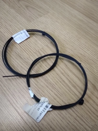 Обычный тормозной трос. Чем то покрыт, посмотрим как, будет ли облазить со временем. Пришло быстро, упакован в пакет пупырку.
