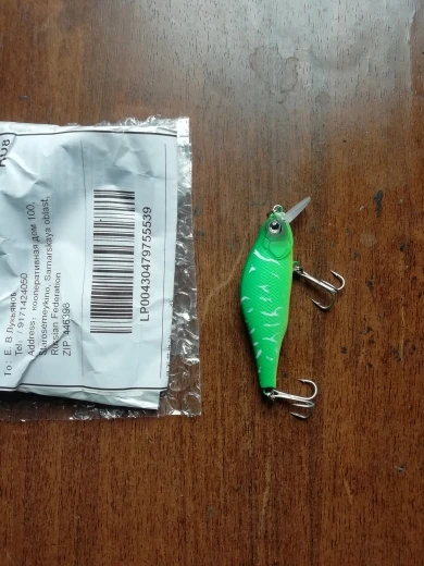 Воблер пристойної якості, гачки гострі. Від дати замовлення до прибуття в поштове відділення минуло 24 дні.