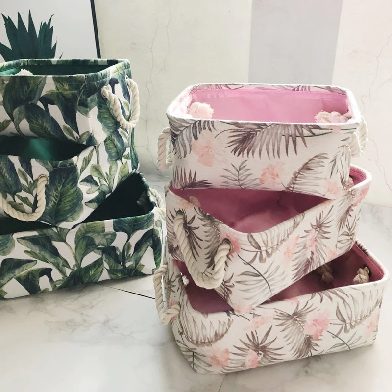 1 шт. складная корзина для хранения мелочей Ящик Контейнер для одежды из хлопка и льна корзины для белья листья цветы Стиль детский игрушечный Органайзер