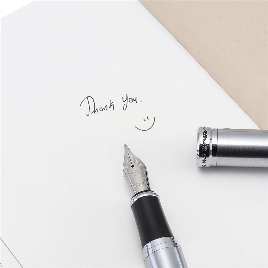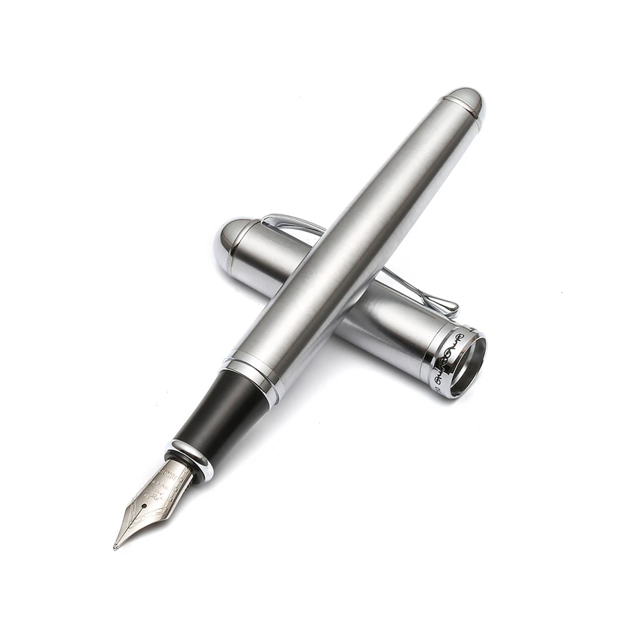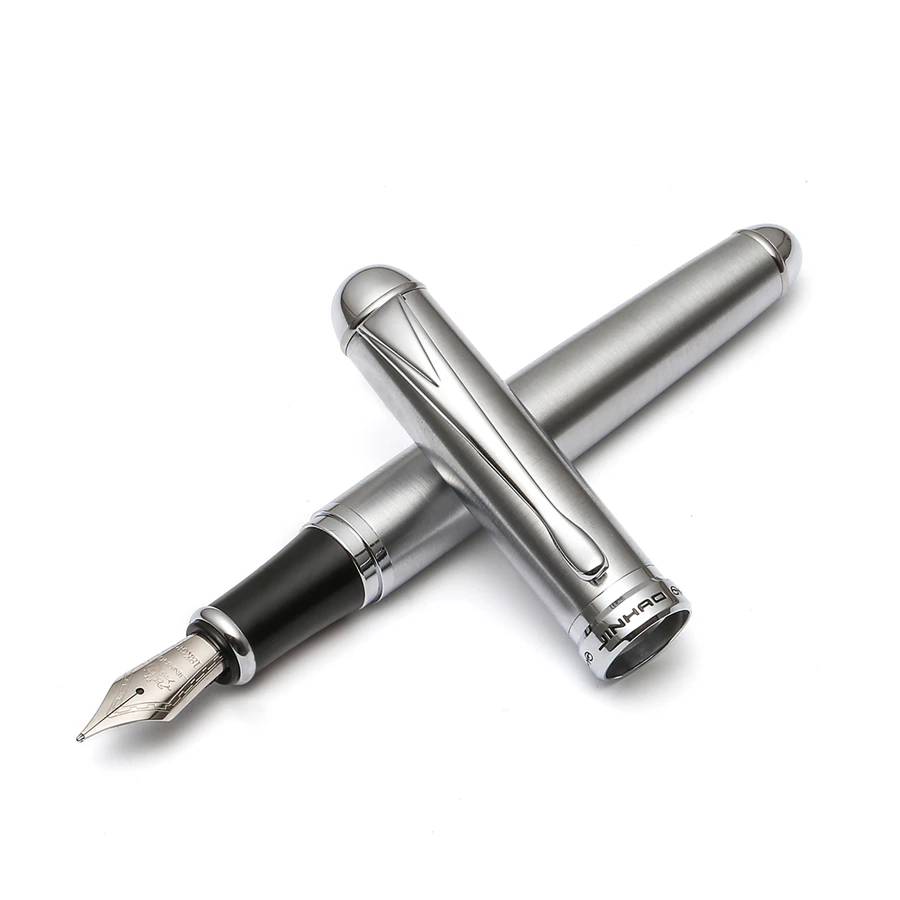 Jinhao 750 Тотем перьевая ручка, металл, Нержавеющаясталь баррель, серебряный цвет отделка клип, Средний Перо, подпись в офисе школы A6299