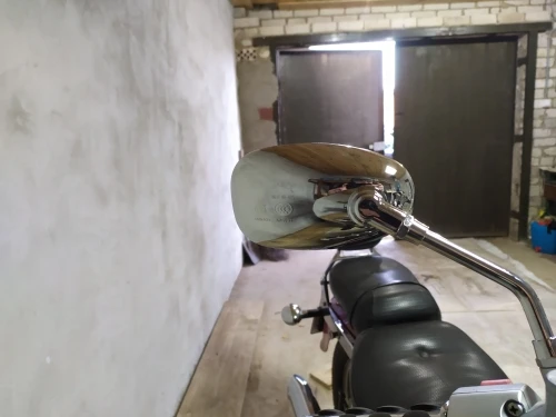 Выглядит так же, как оригинальные Зеркала Kawasaki. Разница заключается в зеркальном корпусе (оригинал-металл, послепродажный-пластик) и цене. Приятный внешний вид, приятный хромированный продукт.