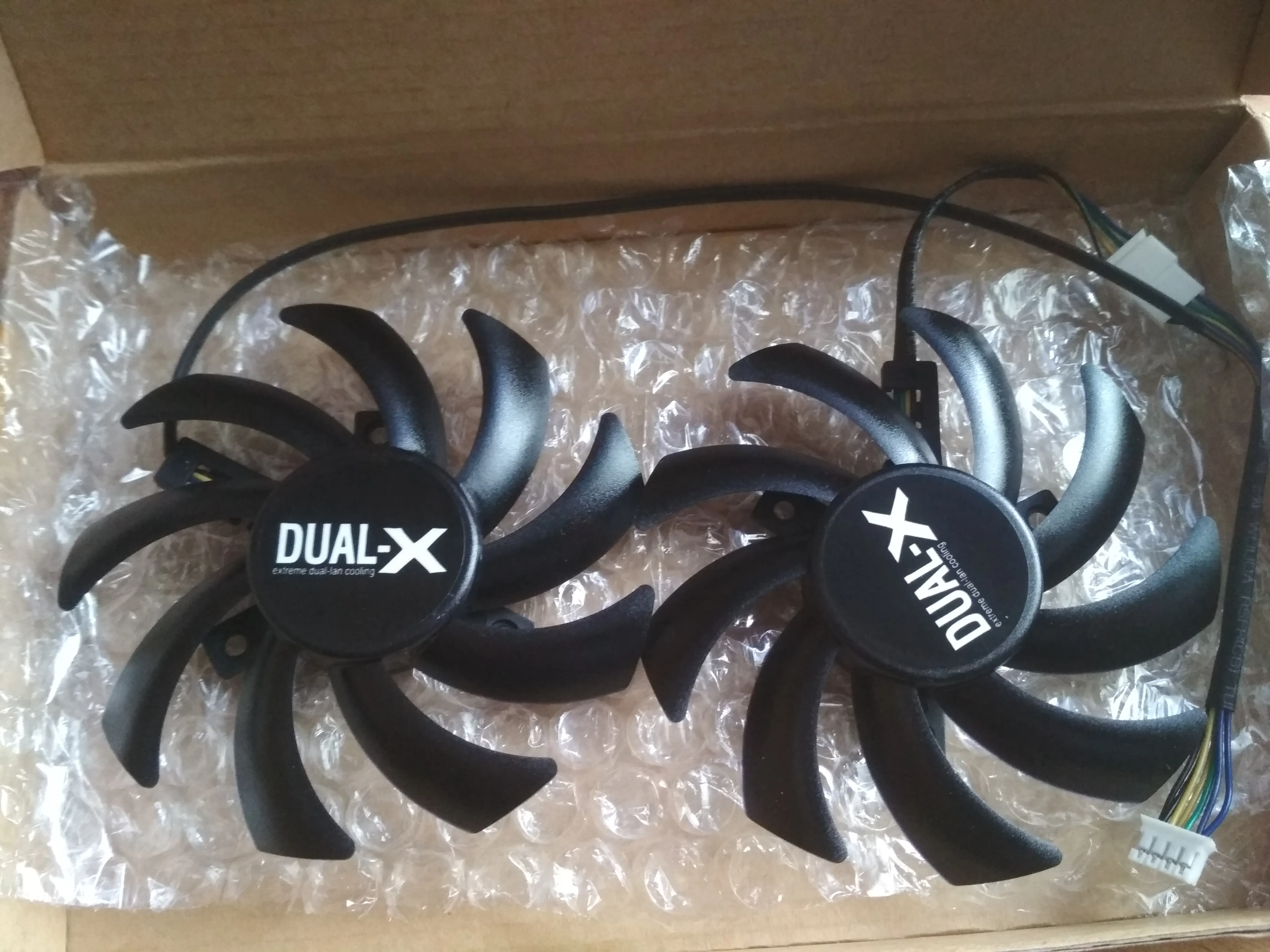 Провод длиннее родных и два коннектора вместо одного, а так кулера встали почти как родные. Пришлось повозиться чтобы уложить провода на 1060. Тихие, карта теперь держит 75* в пике.