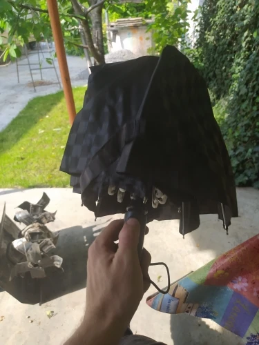 Большой зонт, нормальное качество. При доставке отломался верхний колпачек, пришлось вкрутить шуруп.